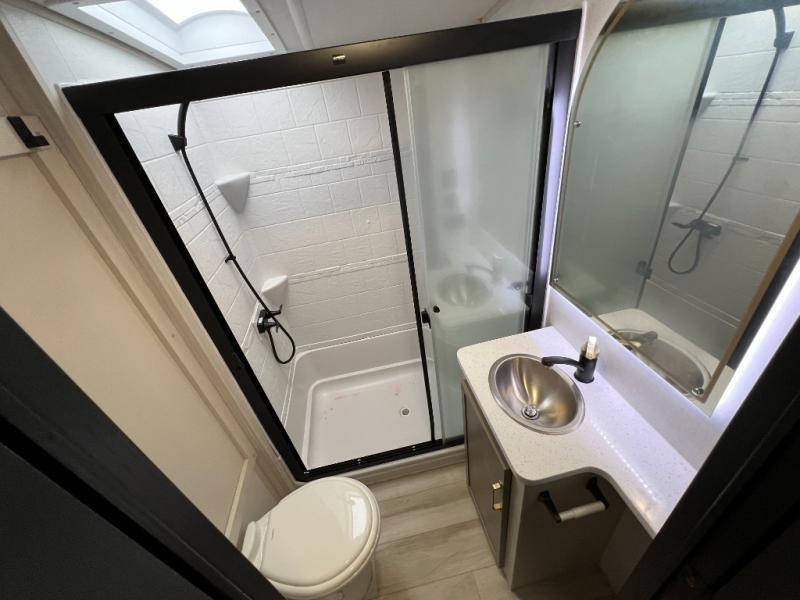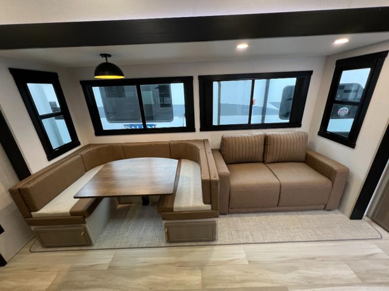 The Salem Hemisphere fifth wheels and travel trailers by Forest River are packed with features, while still being value-minded! Each model is constructed with laminated "Aluma Frame" sidewalls and floor with block foam insulation plus full length barreled ceilings for added head space. There are LED awning, marker and tail lights outside, along with an extra large pass-thru storage with slam latch baggage doors, plus solar prep and Lippert On-The-Go ladder prep. The 60K on-demand tankless water heater will provide endless hot showers, and the JBL sound system includes a head unit plus interior and exterior speakers to keep the party going. There are also many interior comforts found throughout that will make you feel right at home!