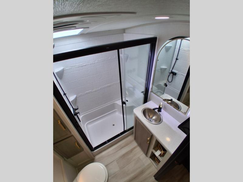 The Salem Hemisphere fifth wheels and travel trailers by Forest River are packed with features, while still being value-minded! Each model is constructed with laminated "Aluma Frame" sidewalls and floor with block foam insulation plus full length barreled ceilings for added head space. There are LED awning, marker and tail lights outside, along with an extra large pass-thru storage with slam latch baggage doors, plus solar prep and Lippert On-The-Go ladder prep. The 60K on-demand tankless water heater will provide endless hot showers, and the JBL sound system includes a head unit plus interior and exterior speakers to keep the party going. There are also many interior comforts found throughout that will make you feel right at home!