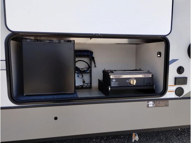 The Salem Hemisphere fifth wheels and travel trailers by Forest River are packed with features, while still being value-minded! Each model is constructed with laminated "Aluma Frame" sidewalls and floor with block foam insulation plus full length barreled ceilings for added head space. There are LED awning, marker and tail lights outside, along with an extra large pass-thru storage with slam latch baggage doors, plus solar prep and Lippert On-The-Go ladder prep. The 60K on-demand tankless water heater will provide endless hot showers, and the JBL sound system includes a head unit plus interior and exterior speakers to keep the party going. There are also many interior comforts found throughout that will make you feel right at home!