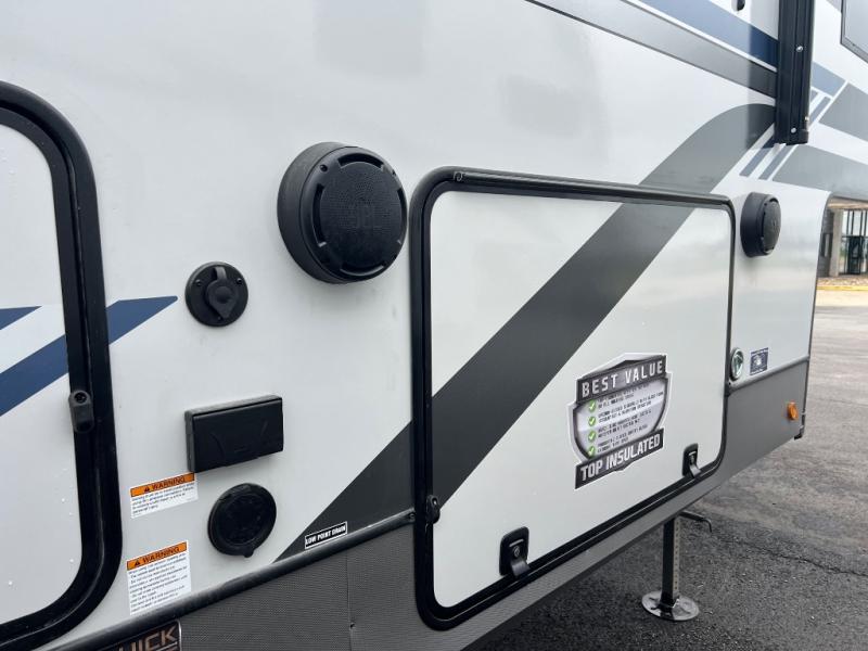 The Salem Hemisphere fifth wheels and travel trailers by Forest River are packed with features, while still being value-minded! Each model is constructed with laminated "Aluma Frame" sidewalls and floor with block foam insulation plus full length barreled ceilings for added head space. There are LED awning, marker and tail lights outside, along with an extra large pass-thru storage with slam latch baggage doors, plus solar prep and Lippert On-The-Go ladder prep. The 60K on-demand tankless water heater will provide endless hot showers, and the JBL sound system includes a head unit plus interior and exterior speakers to keep the party going. There are also many interior comforts found throughout that will make you feel right at home!
