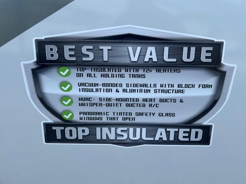 The Salem Hemisphere fifth wheels and travel trailers by Forest River are packed with features, while still being value-minded! Each model is constructed with laminated "Aluma Frame" sidewalls and floor with block foam insulation plus full length barreled ceilings for added head space. There are LED awning, marker and tail lights outside, along with an extra large pass-thru storage with slam latch baggage doors, plus solar prep and Lippert On-The-Go ladder prep. The 60K on-demand tankless water heater will provide endless hot showers, and the JBL sound system includes a head unit plus interior and exterior speakers to keep the party going. There are also many interior comforts found throughout that will make you feel right at home!