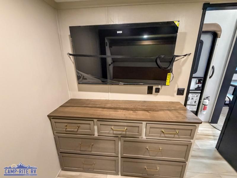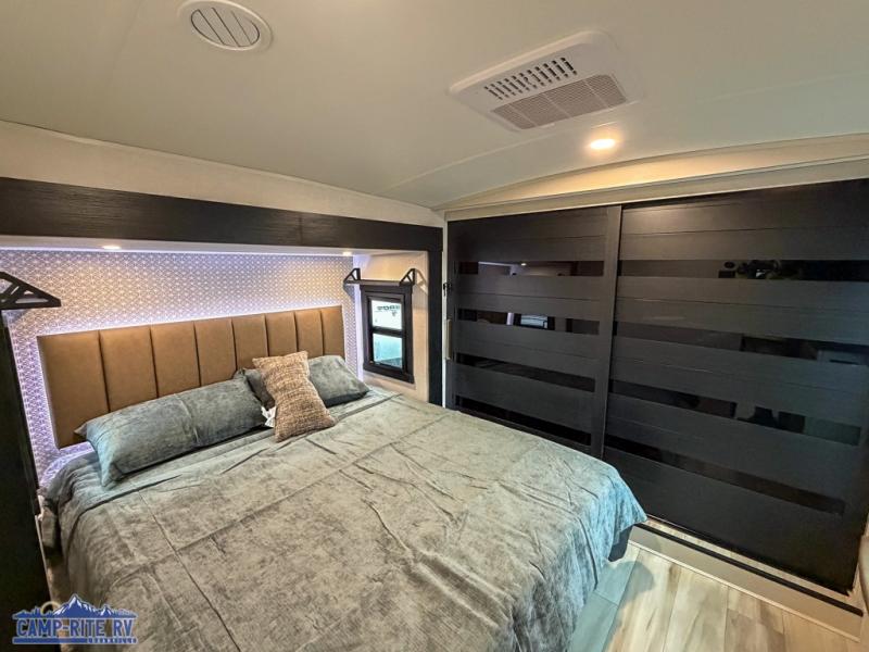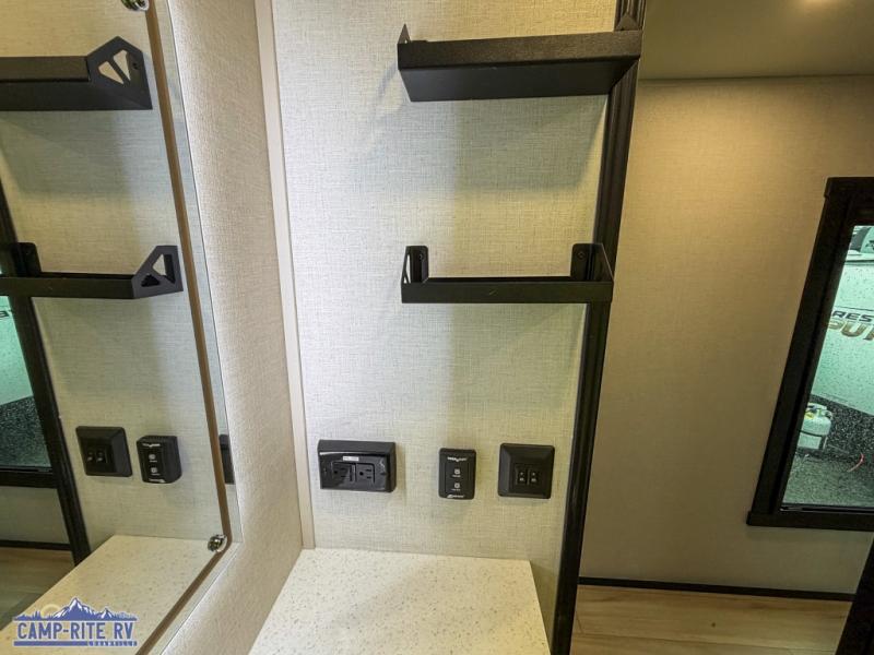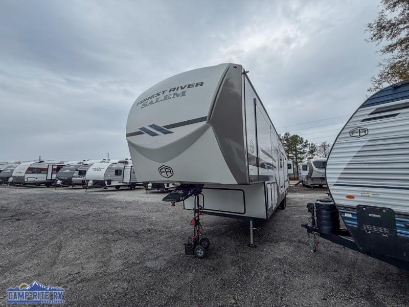 The Salem Hemisphere fifth wheels by Forest River are packed with features, while still being value-minded! Each model is constructed with laminated "Aluma Frame" sidewalls and floor with block foam insulation plus full-length barreled ceilings for added head space. There are LED awning, marker and taillights outside, along with an extra-large pass-thru storage with slam latch baggage doors, plus solar prep and Lippert On-The-Go ladder prep. The 60K on-demand tankless water heater will provide endless hot showers, and the JBL sound system includes a head unit plus interior and exterior speakers to keep the party going. There are also many interior comforts found throughout that will make you feel right at home!