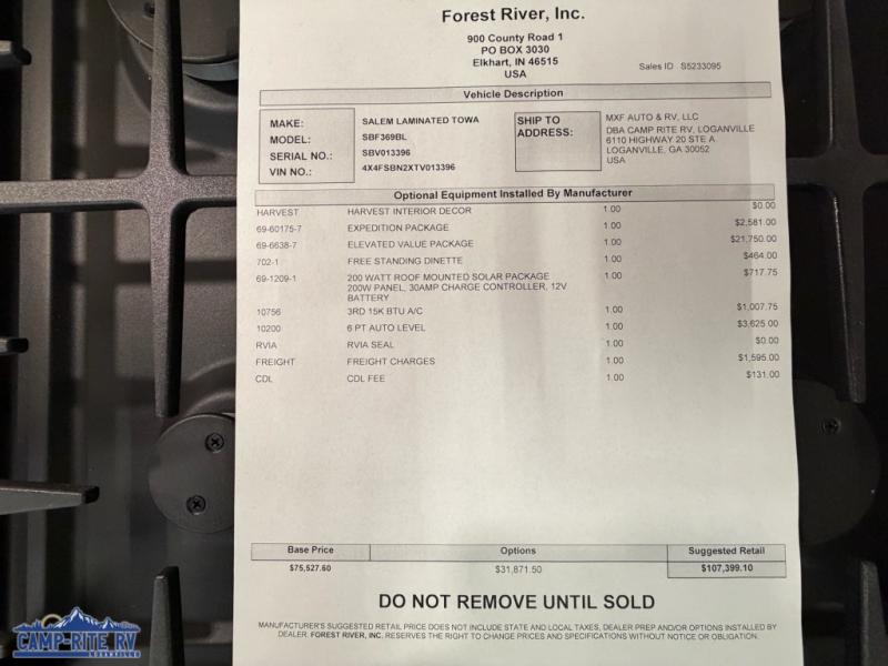 Forest River Salem Hemisphere fifth wheel 369BL highlights: