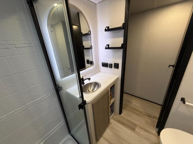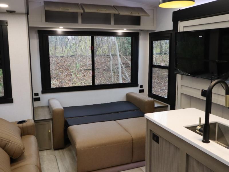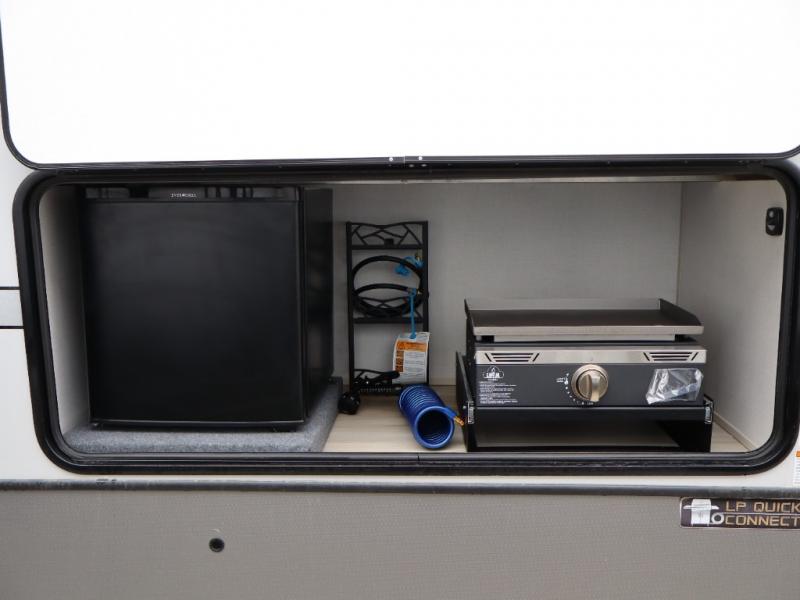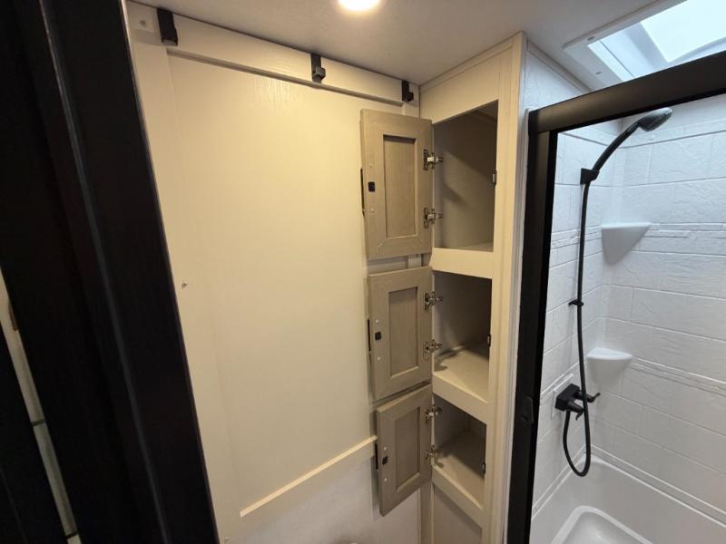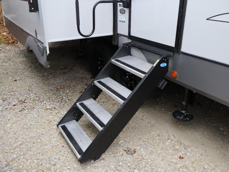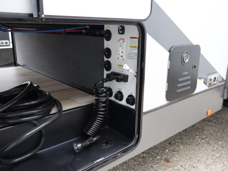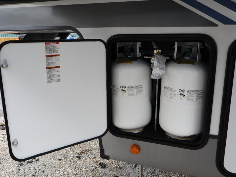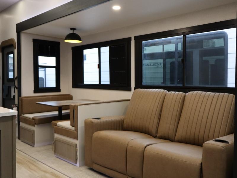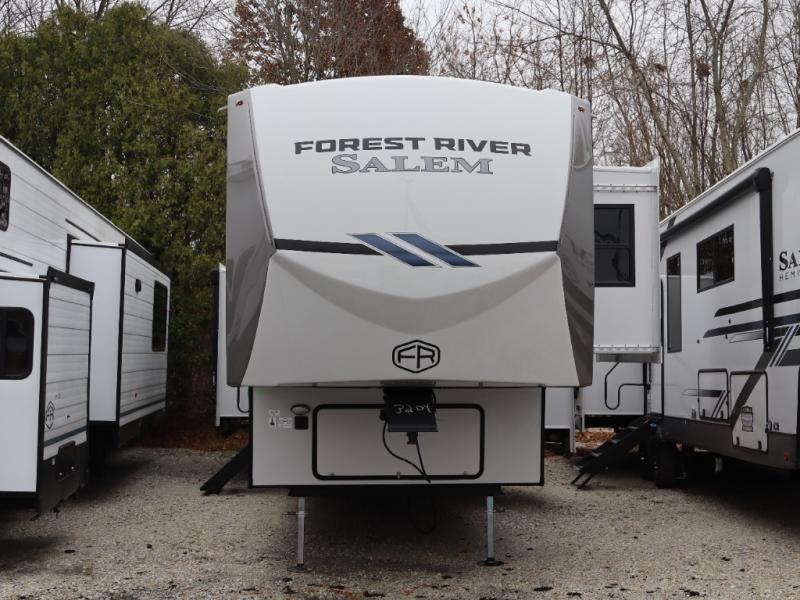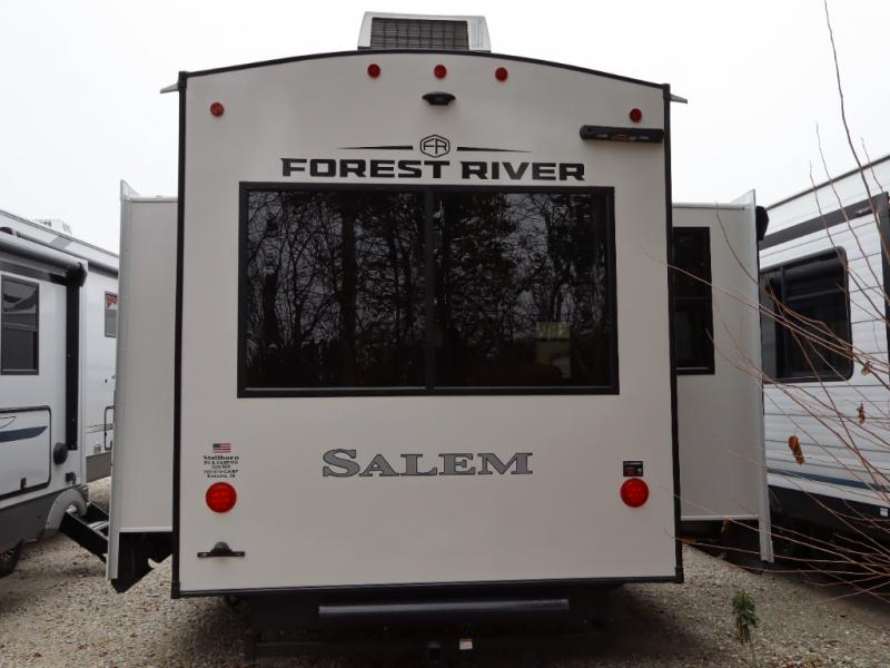 The Salem Hemisphere fifth wheels by Forest River are packed with features, while still being value-minded! Each model is constructed with laminated "Aluma Frame" sidewalls and floor with block foam insulation plus full-length barreled ceilings for added head space. There are LED awning, marker and taillights outside, along with an extra-large pass-thru storage with slam latch baggage doors, plus solar prep and Lippert On-The-Go ladder prep. The 60K on-demand tankless water heater will provide endless hot showers, and the JBL sound system includes a head unit plus interior and exterior speakers to keep the party going. There are also many interior comforts found throughout that will make you feel right at home!