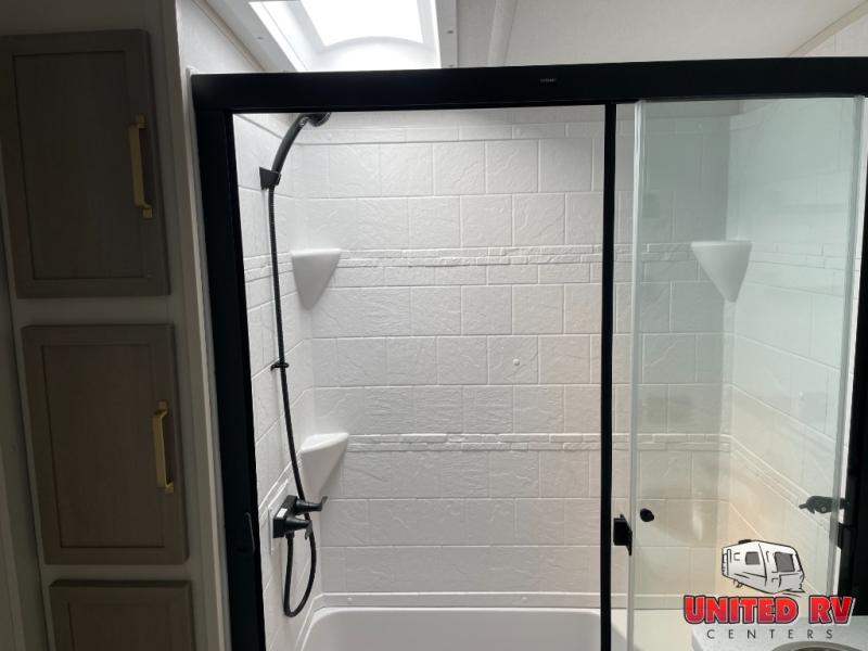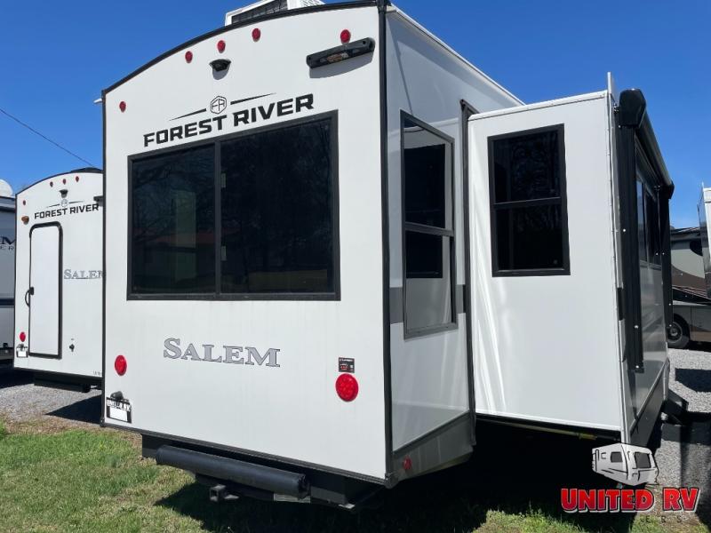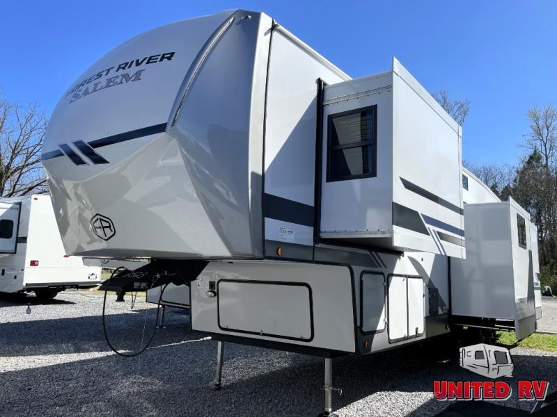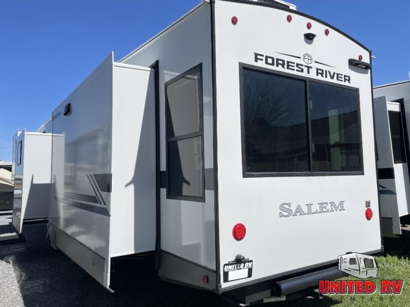 The Salem Hemisphere fifth wheels by Forest River are packed with features, while still being value-minded! Each model is constructed with laminated "Aluma Frame" sidewalls and floor with block foam insulation plus full-length barreled ceilings for added head space. There are LED awning, marker and taillights outside, along with an extra-large pass-thru storage with slam latch baggage doors, plus solar prep and Lippert On-The-Go ladder prep. The 60K on-demand tankless water heater will provide endless hot showers, and the JBL sound system includes a head unit plus interior and exterior speakers to keep the party going. There are also many interior comforts found throughout that will make you feel right at home!