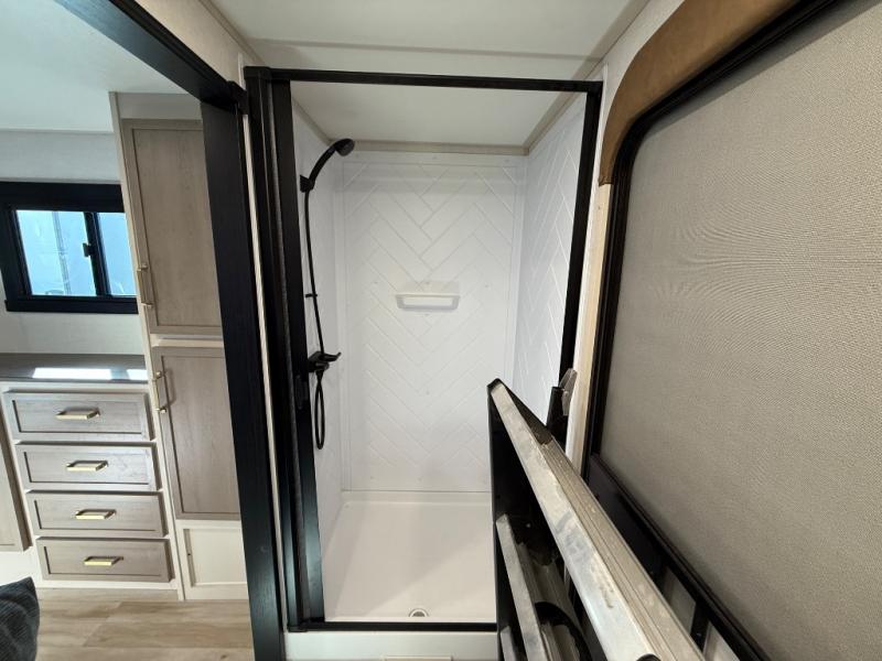 The Salem Hemisphere fifth wheels by Forest River are packed with features, while still being value-minded! Each model is constructed with laminated "Aluma Frame" sidewalls and floor with block foam insulation plus full-length barreled ceilings for added head space. There are LED awning, marker and taillights outside, along with an extra-large pass-thru storage with slam latch baggage doors, plus solar prep and Lippert On-The-Go ladder prep. The 60K on-demand tankless water heater will provide endless hot showers, and the JBL sound system includes a head unit plus interior and exterior speakers to keep the party going. There are also many interior comforts found throughout that will make you feel right at home!