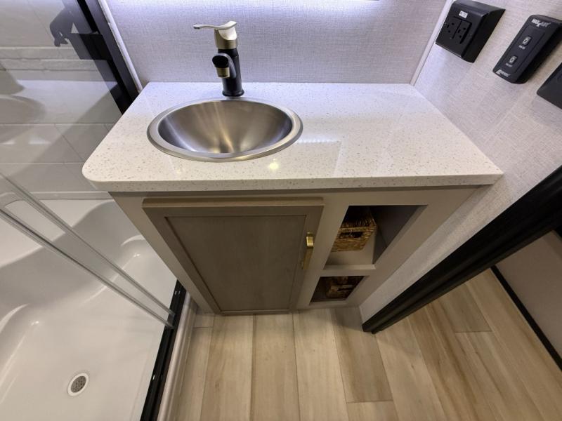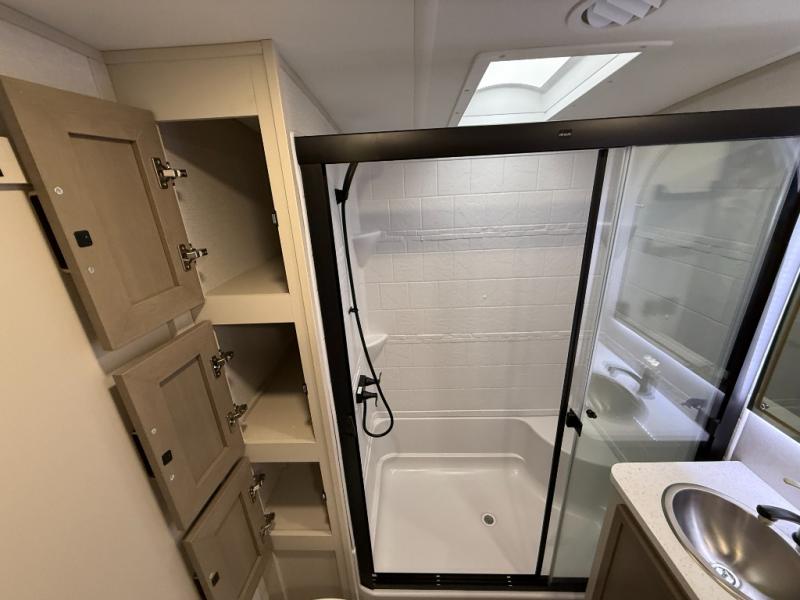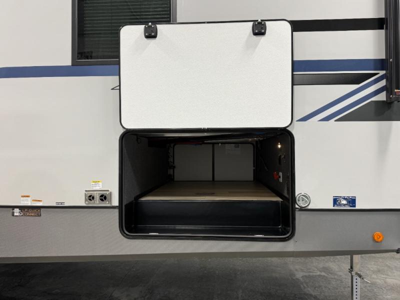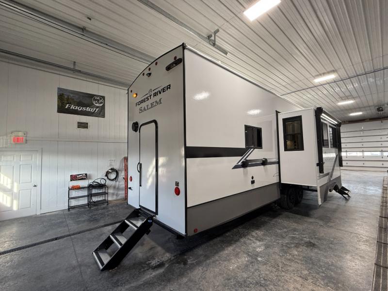 The Salem Hemisphere fifth wheels by Forest River are packed with features, while still being value-minded! Each model is constructed with laminated "Aluma Frame" sidewalls and floor with block foam insulation plus full-length barreled ceilings for added head space. There are LED awning, marker and taillights outside, along with an extra-large pass-thru storage with slam latch baggage doors, plus solar prep and Lippert On-The-Go ladder prep. The 60K on-demand tankless water heater will provide endless hot showers, and the JBL sound system includes a head unit plus interior and exterior speakers to keep the party going. There are also many interior comforts found throughout that will make you feel right at home!