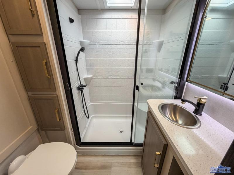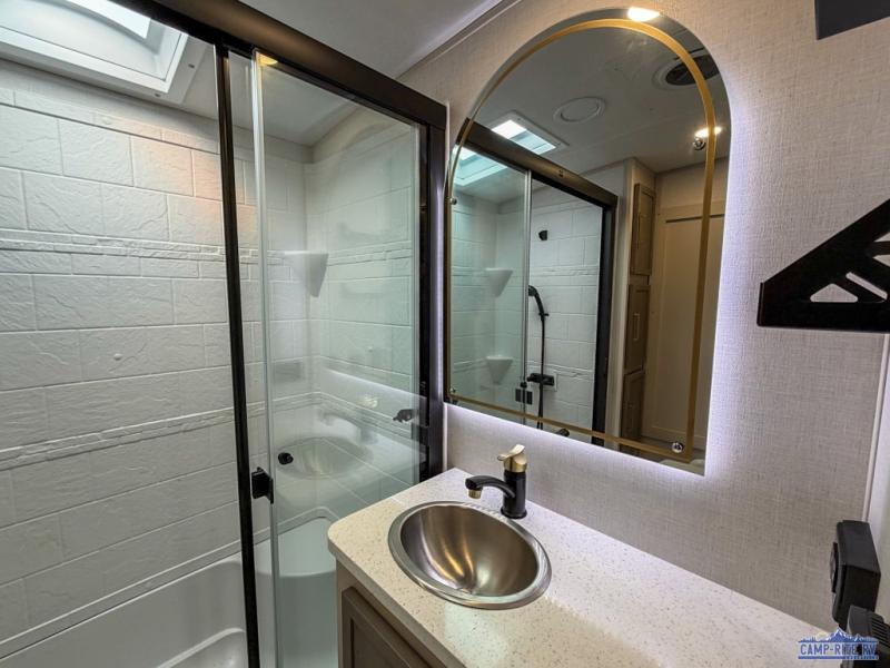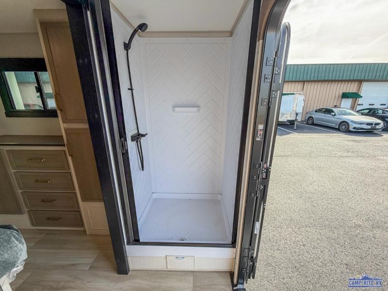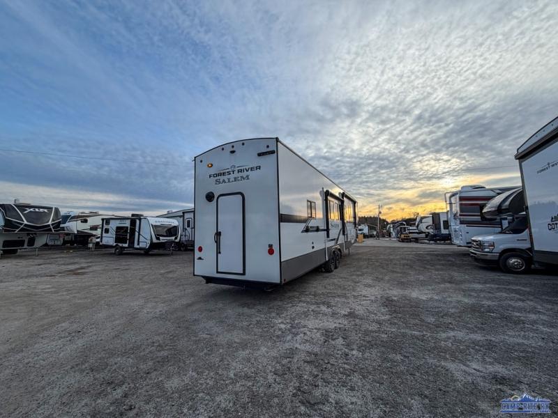 The Salem Hemisphere fifth wheels by Forest River are packed with features, while still being value-minded! Each model is constructed with laminated "Aluma Frame" sidewalls and floor with block foam insulation plus full-length barreled ceilings for added head space. There are LED awning, marker and taillights outside, along with an extra-large pass-thru storage with slam latch baggage doors, plus solar prep and Lippert On-The-Go ladder prep. The 60K on-demand tankless water heater will provide endless hot showers, and the JBL sound system includes a head unit plus interior and exterior speakers to keep the party going. There are also many interior comforts found throughout that will make you feel right at home!