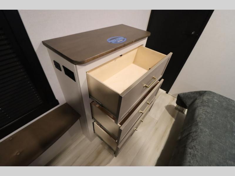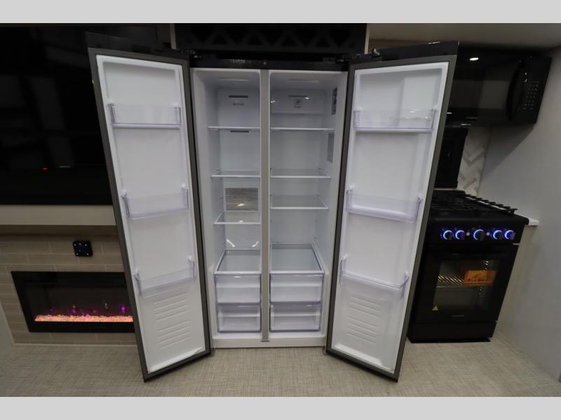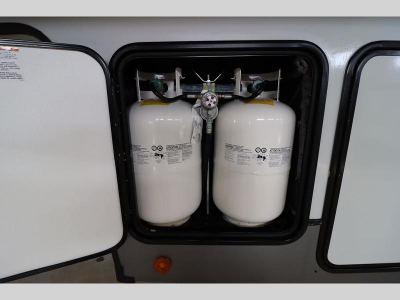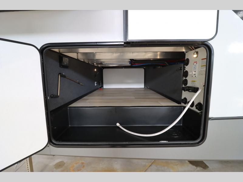 The Salem Hemisphere fifth wheels by Forest River are packed with features, while still being value-minded! Each model is constructed with laminated "Aluma Frame" sidewalls and floor with block foam insulation plus full-length barreled ceilings for added head space. There are LED awning, marker and taillights outside, along with an extra-large pass-thru storage with slam latch baggage doors, plus solar prep and Lippert On-The-Go ladder prep. The 60K on-demand tankless water heater will provide endless hot showers, and the JBL sound system includes a head unit plus interior and exterior speakers to keep the party going. There are also many interior comforts found throughout that will make you feel right at home!