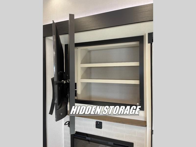 - Hidden Storage behind TV