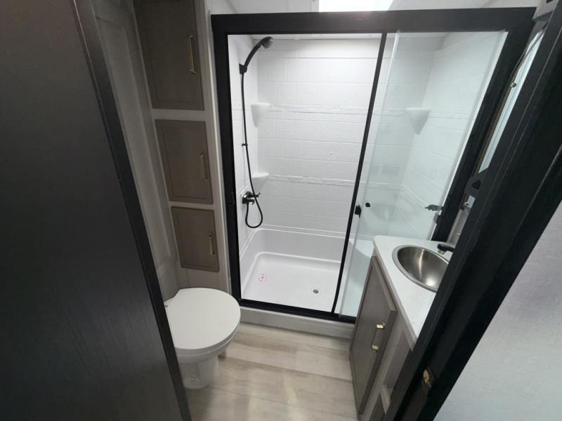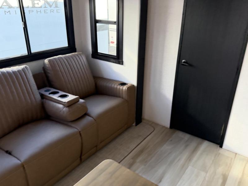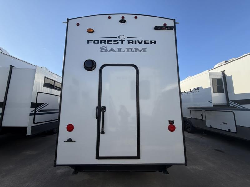 The Salem Hemisphere fifth wheels by Forest River are packed with features, while still being value-minded! Each model is constructed with laminated "Aluma Frame" sidewalls and floor with block foam insulation plus full-length barreled ceilings for added head space. There are LED awning, marker and taillights outside, along with an extra-large pass-thru storage with slam latch baggage doors, plus solar prep and Lippert On-The-Go ladder prep. The 60K on-demand tankless water heater will provide endless hot showers, and the JBL sound system includes a head unit plus interior and exterior speakers to keep the party going. There are also many interior comforts found throughout that will make you feel right at home!