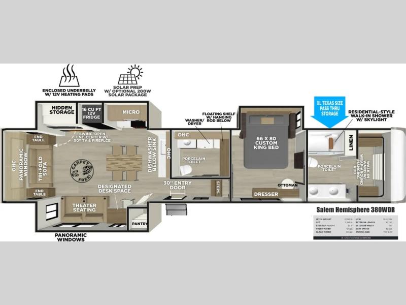 Forest River Salem Hemisphere fifth wheel 380WDR highlights: