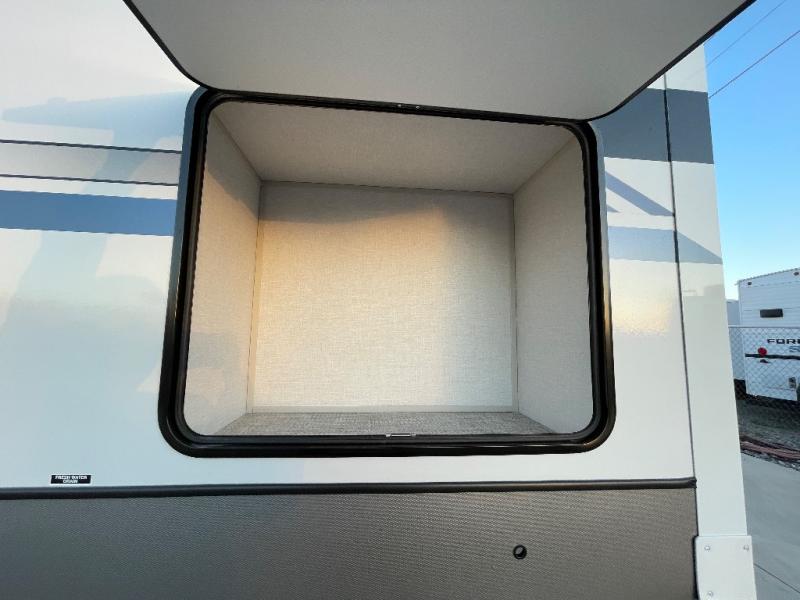 The Salem Hemisphere fifth wheels by Forest River are packed with features, while still being value-minded! Each model is constructed with laminated "Aluma Frame" sidewalls and floor with block foam insulation plus full-length barreled ceilings for added head space. There are LED awning, marker and taillights outside, along with an extra-large pass-thru storage with slam latch baggage doors, plus solar prep and Lippert On-The-Go ladder prep. The 60K on-demand tankless water heater will provide endless hot showers, and the JBL sound system includes a head unit plus interior and exterior speakers to keep the party going. There are also many interior comforts found throughout that will make you feel right at home!