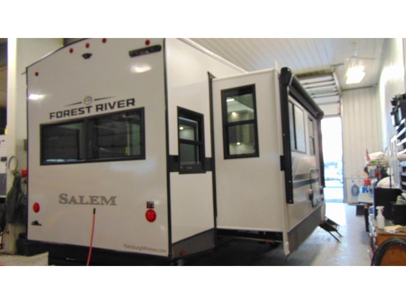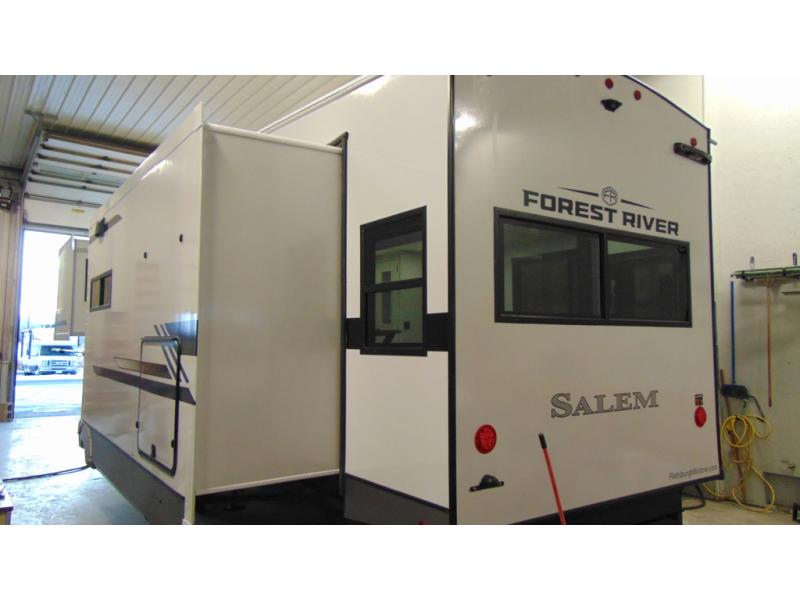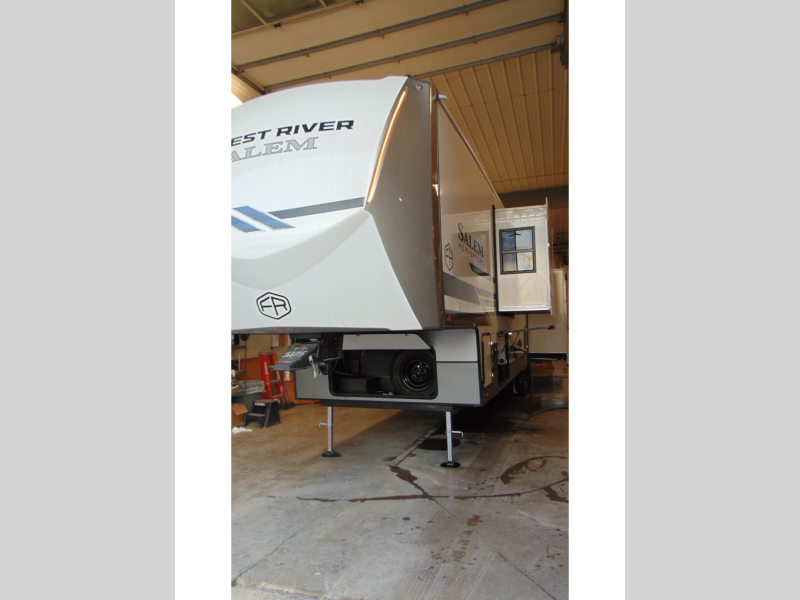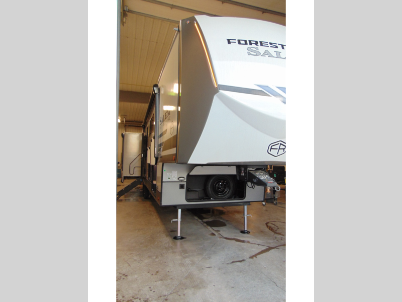 The Salem Hemisphere fifth wheels by Forest River are packed with features, while still being value-minded! Each model is constructed with laminated "Aluma Frame" sidewalls and floor with block foam insulation plus full-length barreled ceilings for added head space. There are LED awning, marker and taillights outside, along with an extra-large pass-thru storage with slam latch baggage doors, plus solar prep and Lippert On-The-Go ladder prep. The 60K on-demand tankless water heater will provide endless hot showers, and the JBL sound system includes a head unit plus interior and exterior speakers to keep the party going. There are also many interior comforts found throughout that will make you feel right at home!