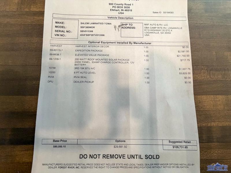 Forest River Salem Hemisphere fifth wheel 380WDR highlights: