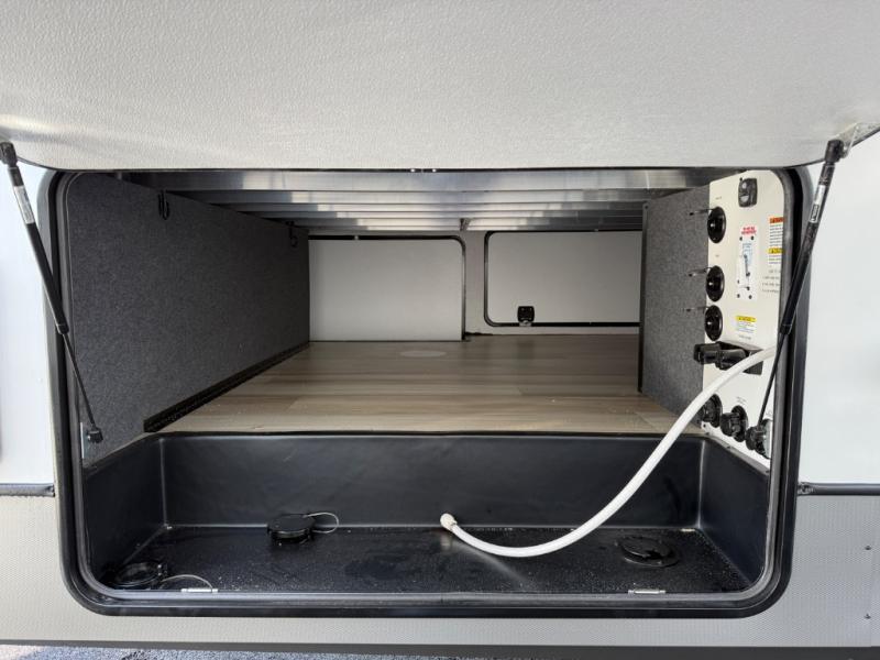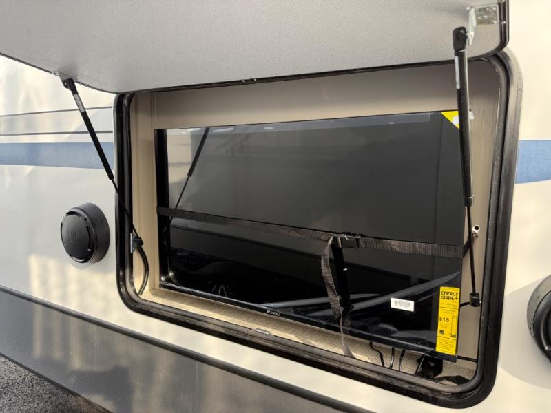 The Salem Hemisphere fifth wheels by Forest River are packed with features, while still being value-minded! Each model is constructed with laminated "Aluma Frame" sidewalls and floor with block foam insulation plus full-length barreled ceilings for added head space. There are LED awning, marker and taillights outside, along with an extra-large pass-thru storage with slam latch baggage doors, plus solar prep and Lippert On-The-Go ladder prep. The 60K on-demand tankless water heater will provide endless hot showers, and the JBL sound system includes a head unit plus interior and exterior speakers to keep the party going. There are also many interior comforts found throughout that will make you feel right at home!