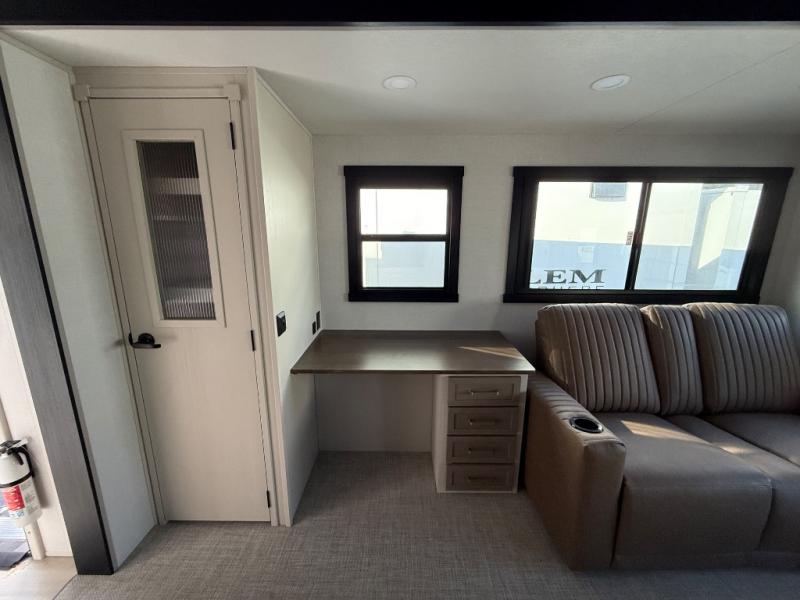 The Salem Hemisphere fifth wheels by Forest River are packed with features, while still being value-minded! Each model is constructed with laminated "Aluma Frame" sidewalls and floor with block foam insulation plus full-length barreled ceilings for added head space. There are LED awning, marker and taillights outside, along with an extra-large pass-thru storage with slam latch baggage doors, plus solar prep and Lippert On-The-Go ladder prep. The 60K on-demand tankless water heater will provide endless hot showers, and the JBL sound system includes a head unit plus interior and exterior speakers to keep the party going. There are also many interior comforts found throughout that will make you feel right at home!