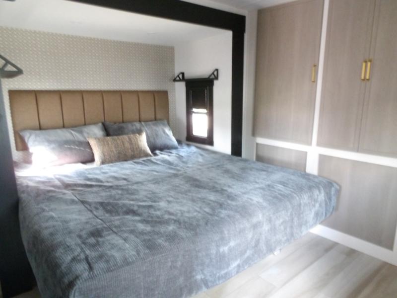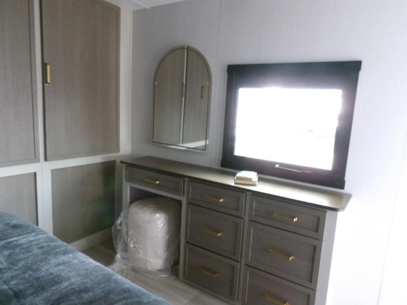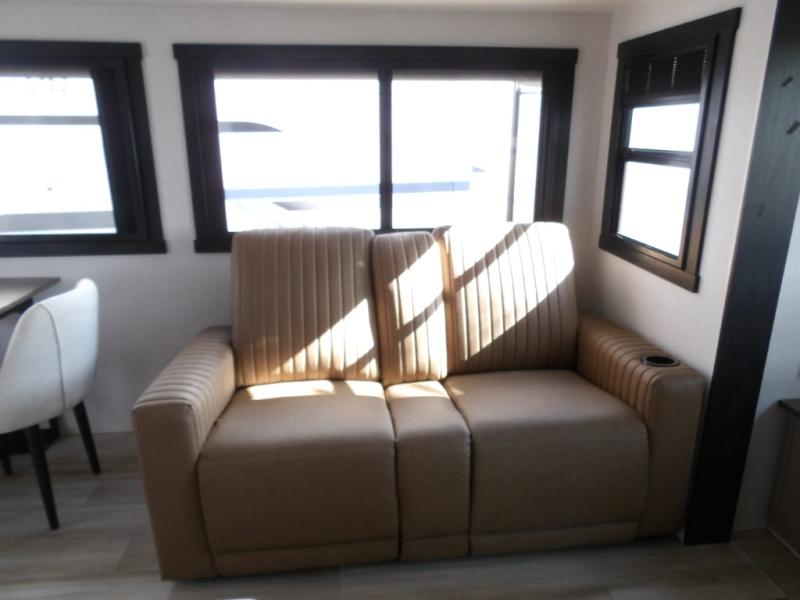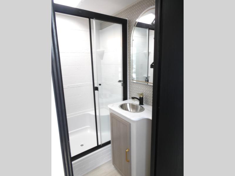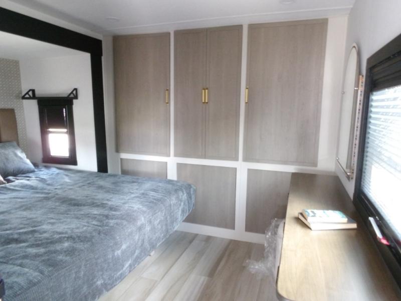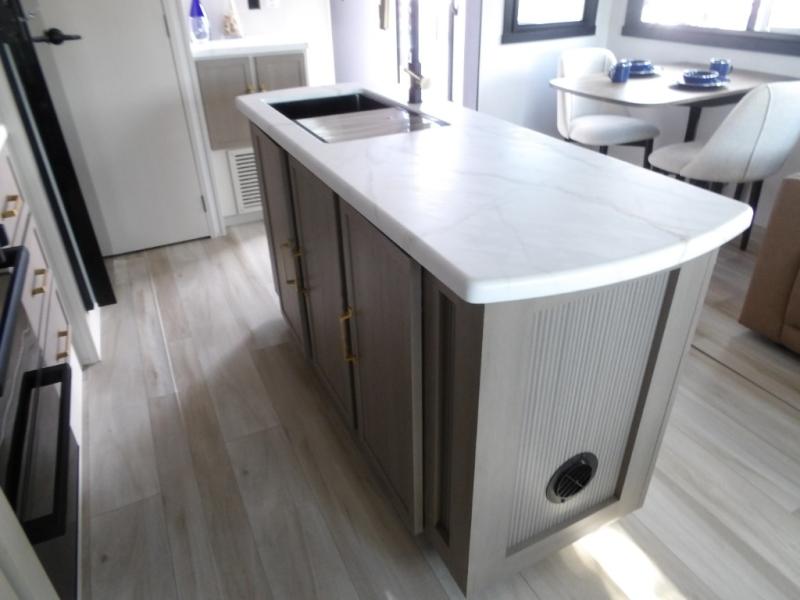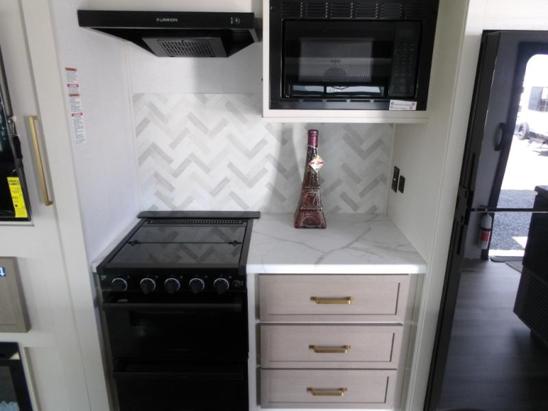 This travel trailer is decked out in features you will love like the front walk-in wardrobe with washer/dryer prep inside the front private bedroom! The full bathroom has everything you will need to get squeaky clean each morning including a residential walk-in shower with a skylight to let in some natural lighting. There is a hutch for you to store your dishes and a kitchen island to make meal prepping even easier. Once you have created a delicious meal, you can head to the booth dinette and enjoy eating it there comfortably while enjoying your view out of the panoramic window!