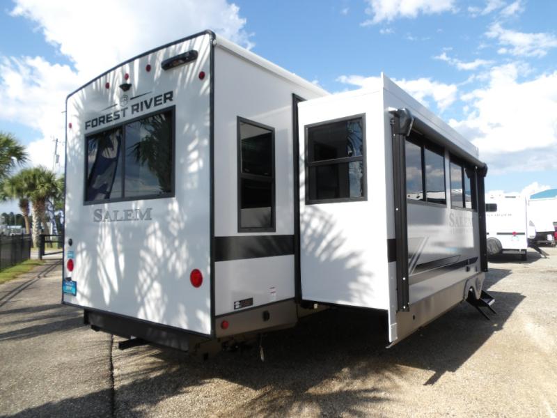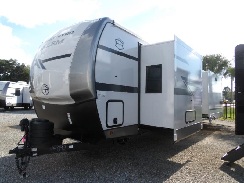 The Salem Hemisphere fifth wheels and travel trailers by Forest River are packed with features, while still being value-minded! Each model is constructed with laminated "Aluma Frame" sidewalls and floor with block foam insulation plus full length barreled ceilings for added head space. There are LED awning, marker and tail lights outside, along with an extra large pass-thru storage with slam latch baggage doors, plus solar prep and Lippert On-The-Go ladder prep. The 60K on-demand tankless water heater will provide endless hot showers, and the JBL sound system includes a head unit plus interior and exterior speakers to keep the party going. There are also many interior comforts found throughout that will make you feel right at home!