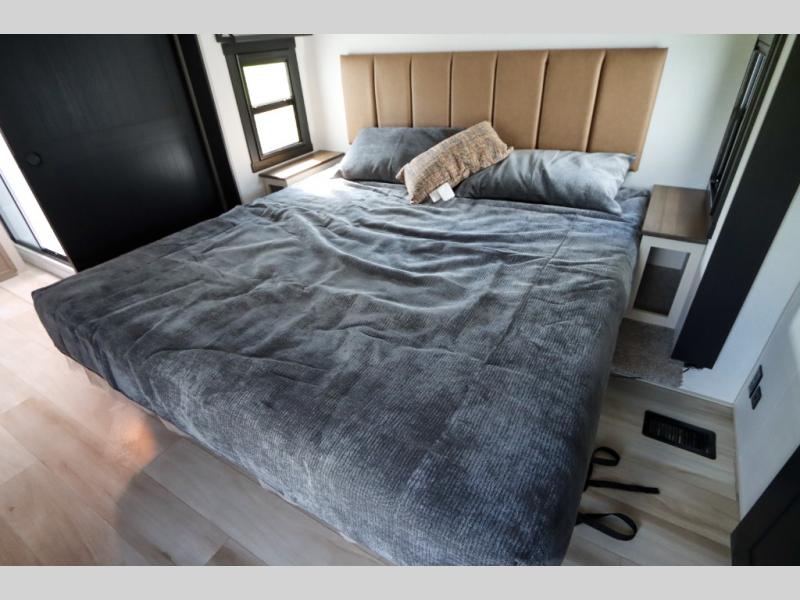 With each Forest River Salem Hemisphere Elite fifth wheel, there are laminated "Aluma Frame" sidewalls and floor with block foam insulation and a full-profile wrap-around front cap. There are also power stabilizer jacks and landing gear outside, along with back up camera prep and Lippert On-The-Go ladder prep, plus an AccessiBelly Underbelly for added protection against the elements. The included Elevated Value Package features high-end solid surface countertops, a JBL sound system, and an RV Airflow mechanism, which provides a minimum of 25% better airflow. You'll find even more amenities within the Expedition Package, such as an in-line water filtration system, a king bed in the master bedrooms, a spacious 20 cu. ft. refrigerator, a 24" four burner "turkey-sized" gas range, and more residential features!