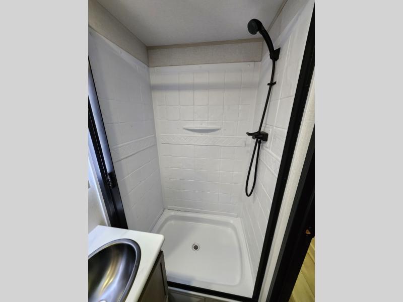 With any Salem Hemisphere Hyper-Lyte travel trailer by Forest River, you will appreciate a wide stance axle and laminated "Aluma Frame" sidewalls and floor for added durability. There are also square windows with built-in shades with reflecting thermal-foil backing to help keep your trailer cool during the summer. The 2" accessory hitch receiver will allow you to bring along more camp gear, and the tankless water heater is a feature you won't want to camp without! Inside, you'll find Temple Cherry cabinetry, wood door casings in place of plastic, a residential single bowl undermount sink, and many more comforts. Outside, your furry friend will be happy with the shaded pet tether and security hook, and there is even an outside shower with hot and cold water to fill the dogs water bowl and wash off hiking boots!