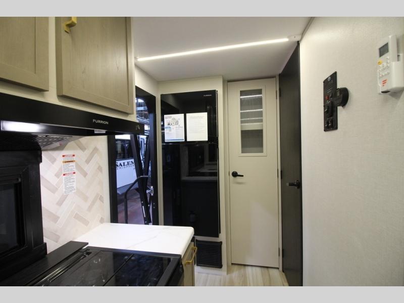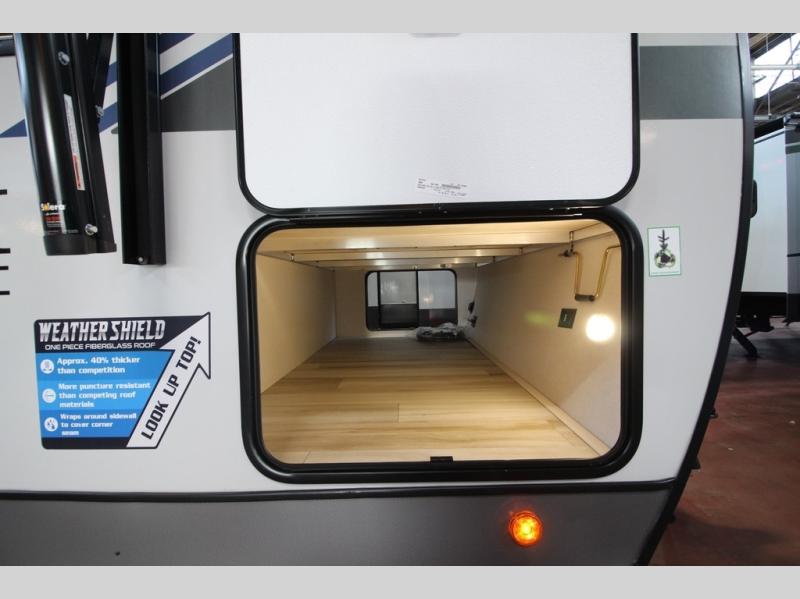 With any Salem Hemisphere Hyper-Lyte travel trailer by Forest River, you will appreciate a wide stance axle and laminated "Aluma Frame" sidewalls and floor for added durability. There are also square windows with built-in shades with reflecting thermal-foil backing to help keep your trailer cool during the summer. The 2" accessory hitch receiver will allow you to bring along more camp gear, and the tankless water heater is a feature you won't want to camp without! Inside, you'll find Temple Cherry cabinetry, wood door casings in place of plastic, a residential single bowl undermount sink, and many more comforts. Outside, your furry friend will be happy with the shaded pet tether and security hook, and there is even an outside shower with hot and cold water to fill the dogs water bowl and wash off hiking boots!