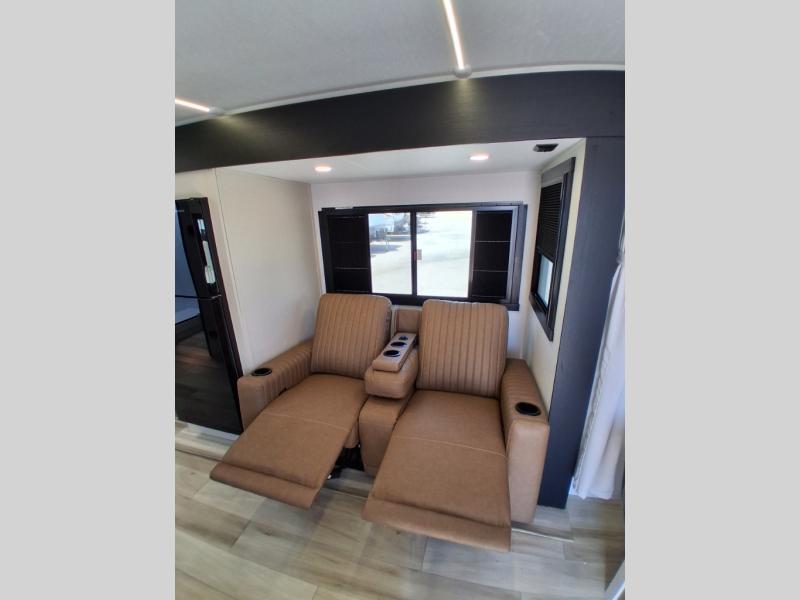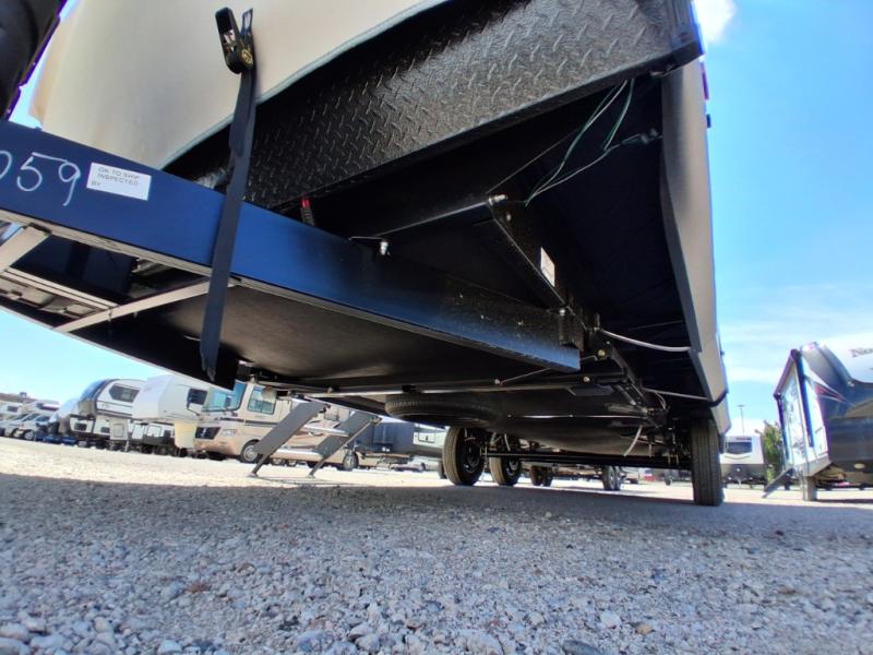This Salem Hemisphere Hyper-Lyte trailer is perfect for a couple or even three or four if you don't mind converting the dinette for added sleeping space. And the large slide will provide more space to stretch out. Snuggle up each night on the queen bed with Versa-Tilt for a great night's rest and enjoy the 30" x 36" walk-in shower with skylight as you wake. A 16' awning provides added living space and protection from the elements if you want to enjoy as much time outdoors as possible, even cooking can be done with the outside kitchen including a refrigerator, griddle, and spray port for cleaning up. No worries about packing all of your fun games both inside and out; with the Texas size pass-through storage you can bring it all along!