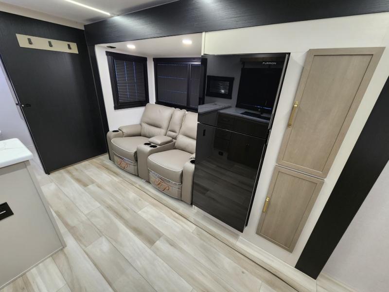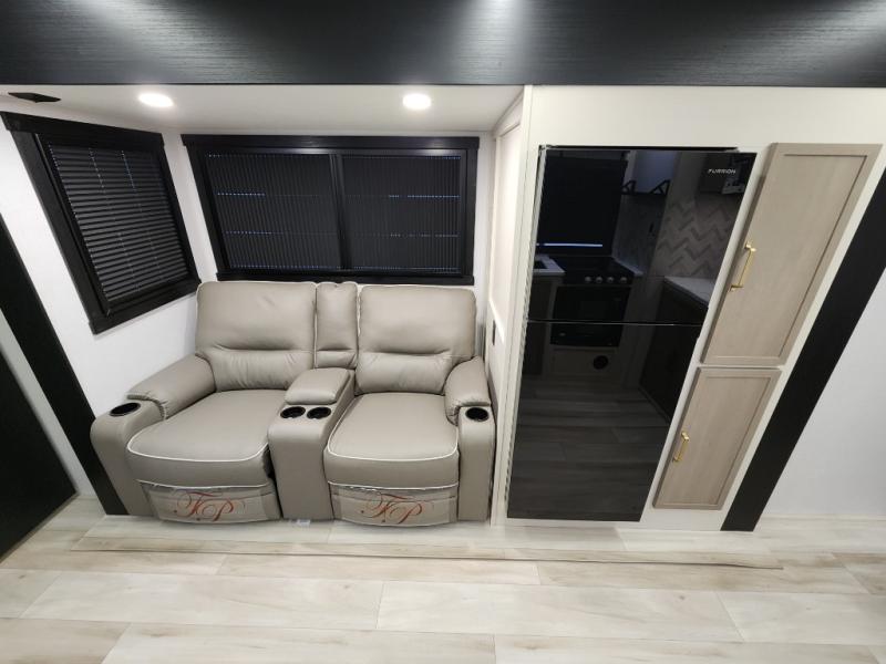 Once you step inside this spacious Salem Hemisphere Hyper-Lyte travel trailer, you'll want to take it out every other weekend for fun with your friends or family! The large slide out opens up the living and kitchen area and allows everyone to move around freely. The chef of the family can prepare dinner on the three-burner range, and they'll love having hidden storage behind the entertainment center for canned goods, snacks, and more. After a day at the lake, get cleaned up in the full rear bath before heading to the living area to relax on the theater seating while you watch a show on the 40" LED TV with a fireplace below. This trailer includes a front private bedroom with a queen bed with Versa-Tilt and space to walk around the bed. You can easily store all your hiking gear in the Texas sized pass-through storage, and cold drinks can go in the outdoor refrigerator!