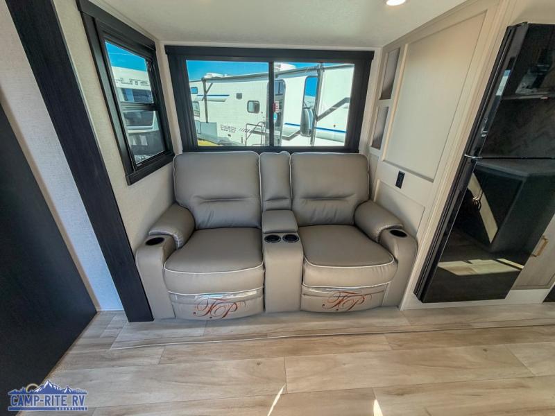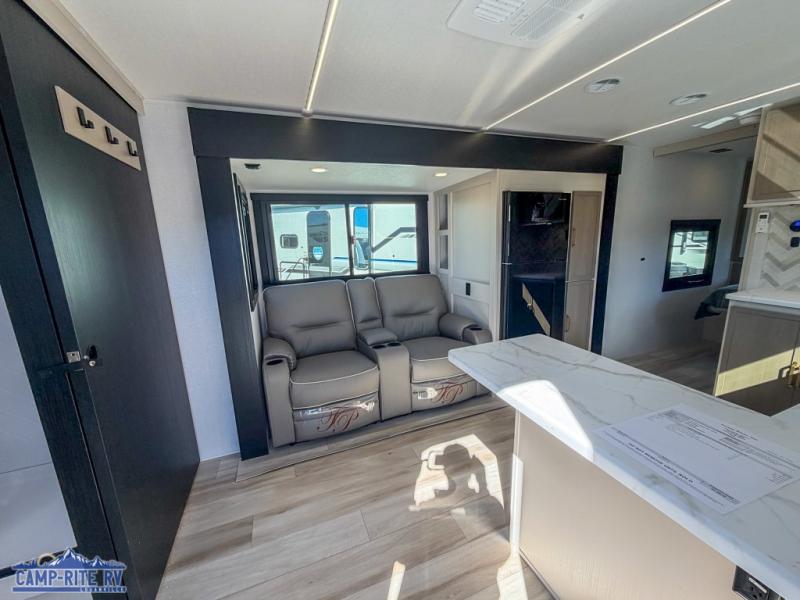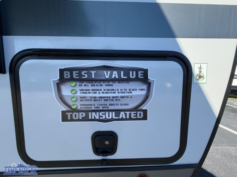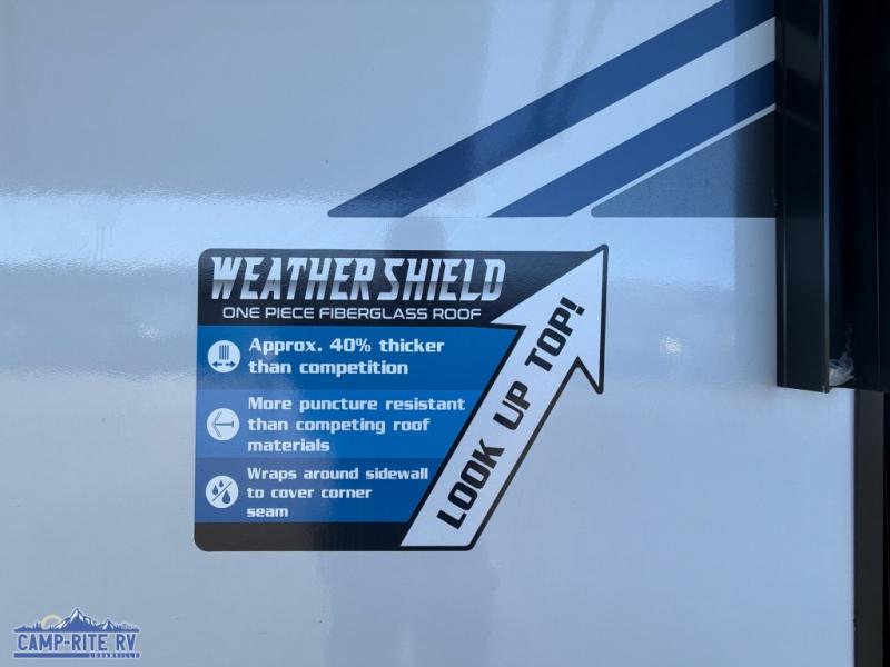 Once you step inside this spacious Salem Hemisphere Hyper-Lyte travel trailer, you'll want to take it out every other weekend for fun with your friends or family! The large slide out opens up the living and kitchen area and allows everyone to move around freely. The chef of the family can prepare dinner on the three-burner range, and they'll love having hidden storage behind the entertainment center for canned goods, snacks, and more. After a day at the lake, get cleaned up in the full rear bath before heading to the living area to relax on the theater seating while you watch a show on the 40" LED TV with a fireplace below. This trailer includes a front private bedroom with a queen bed with Versa-Tilt and space to walk around the bed. You can easily store all your hiking gear in the Texas sized pass-through storage, and cold drinks can go in the outdoor refrigerator!
