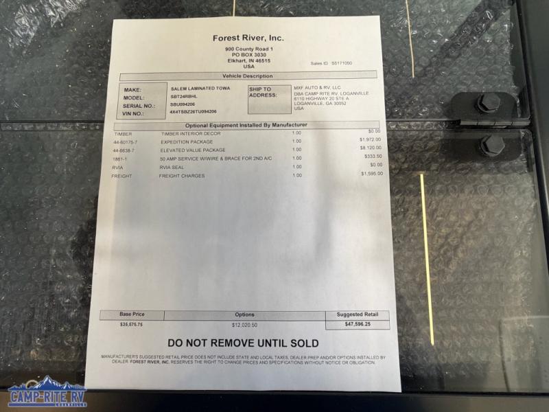 With any Salem Hemisphere Hyper-Lyte travel trailer by Forest River, you will appreciate a wide stance axle and Maxxis radial tires for smooth towing, plus laminated "Aluma Frame" sidewalls and floor for added durability. There are also square windows with built-in shades with reflecting thermal-foil backing to help keep your trailer cool during the summer. The 2" accessory hitch receiver will allow you to bring along more camp gear and the tankless water heater is a feature you won't want to camp without! Inside, you'll find Temple Cherry cabinetry, wood door casings in place of plastic, a residential single bowl undermount sink, and many more comforts. Outside, your furry friend will be happy with the shaded pet tether and security hook, and there is even an outside shower with hot and cold water to fill the dogs water bowl and wash off hiking boots!