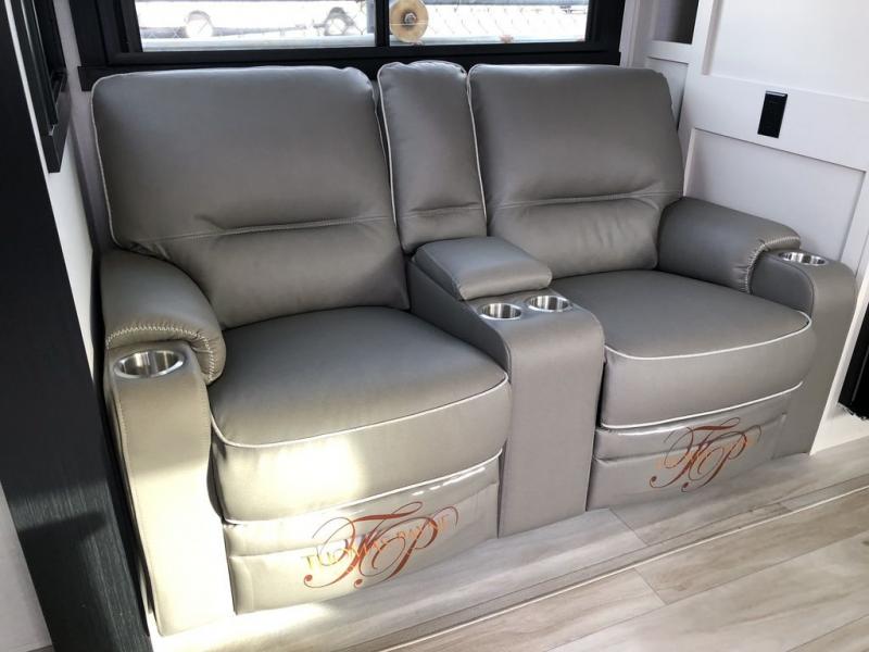This dual entry travel trailer is perfect for your family or group of four! There is a front master bedroom up front with its own exterior entry door so you can slip out in the morning to go fish. You'll also find a queen bed with Versa-Tilt, dual bedroom wardrobes, and easy access to the walk-through bath. Any guests you have can sleep on the U-shaped dinette in the back, and in the morning, everyone can enjoy breakfast here before heading out for the day. You can prepare lunch in the full kitchen that includes a countertop extension for convenience, plus a 12V refrigerator and a pantry for food storage. If the weather is nice, you might just want to cook on the exterior griddle, and the outdoor refrigerator will let you store cold drinks! On the rainy days you can plan to relax on the theater seating within the slide out and watch a movie on the 40" LED TV. There is even a fireplace for a more cozy feel.