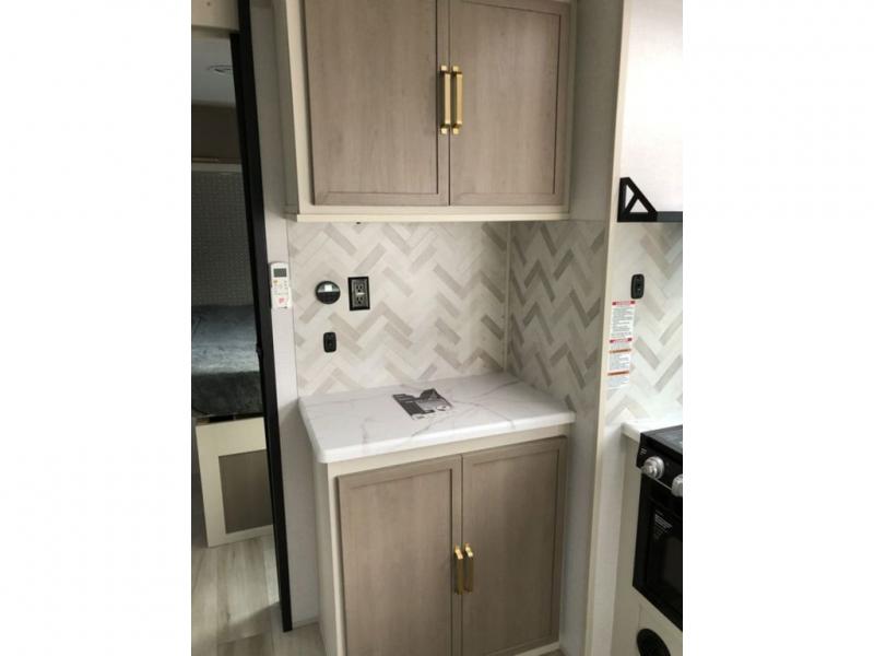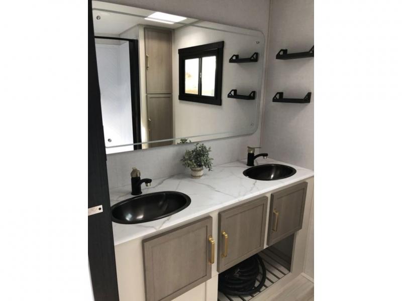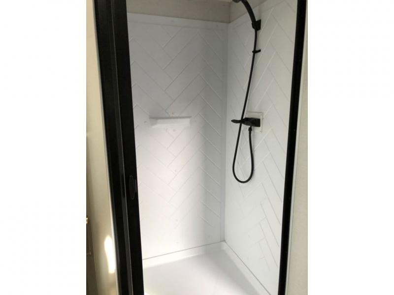 With any Salem Hemisphere Hyper-Lyte travel trailer by Forest River, you will appreciate a wide stance axle and Maxxis radial tires for smooth towing, plus laminated "Aluma Frame" sidewalls and floor for added durability. There are also square windows with built-in shades with reflecting thermal-foil backing to help keep your trailer cool during the summer. The 2" accessory hitch receiver will allow you to bring along more camp gear and the tankless water heater is a feature you won't want to camp without! Inside, you'll find Temple Cherry cabinetry, wood door casings in place of plastic, a residential single bowl undermount sink, and many more comforts. Outside, your furry friend will be happy with the shaded pet tether and security hook, and there is even an outside shower with hot and cold water to fill the dogs water bowl and wash off hiking boots!