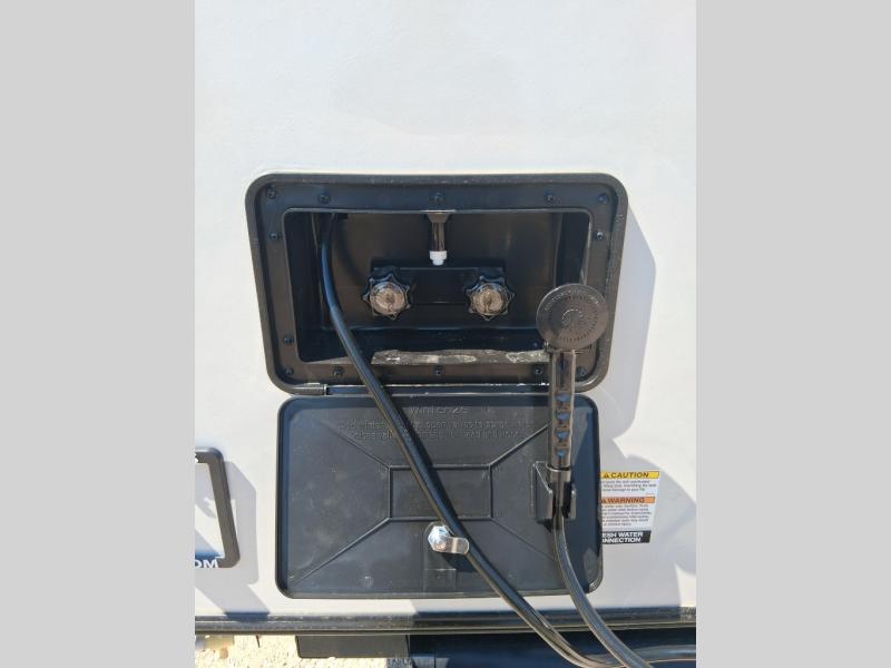 With any Salem Hemisphere Hyper-Lyte travel trailer by Forest River, you will appreciate a wide stance axle and Maxxis radial tires for smooth towing, plus laminated "Aluma Frame" sidewalls and floor for added durability. There are also square windows with built-in shades with reflecting thermal-foil backing to help keep your trailer cool during the summer. The 2" accessory hitch receiver will allow you to bring along more camp gear and the tankless water heater is a feature you won't want to camp without! Inside, you'll find Temple Cherry cabinetry, wood door casings in place of plastic, a residential single bowl undermount sink, and many more comforts. Outside, your furry friend will be happy with the shaded pet tether and security hook, and there is even an outside shower with hot and cold water to fill the dogs water bowl and wash off hiking boots!