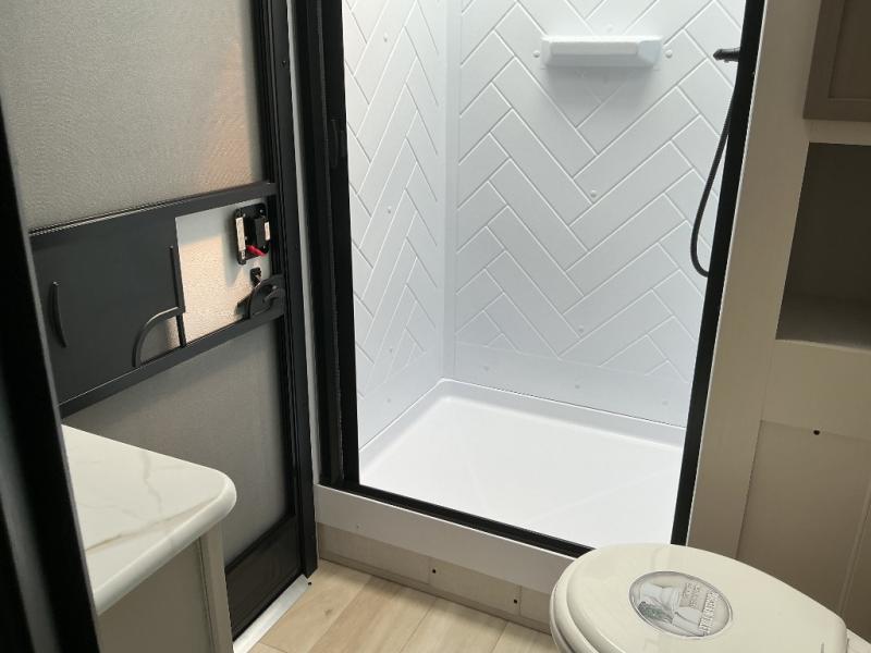 With any Salem Hemisphere Hyper-Lyte travel trailer by Forest River, you will appreciate a wide stance axle and laminated "Aluma Frame" sidewalls and floor for added durability. There are also square windows with built-in shades with reflecting thermal-foil backing to help keep your trailer cool during the summer. The 2" accessory hitch receiver will allow you to bring along more camp gear, and the tankless water heater is a feature you won't want to camp without! Inside, you'll find Temple Cherry cabinetry, wood door casings in place of plastic, a residential single bowl undermount sink, and many more comforts. Outside, your furry friend will be happy with the shaded pet tether and security hook, and there is even an outside shower with hot and cold water to fill the dogs water bowl and wash off hiking boots!