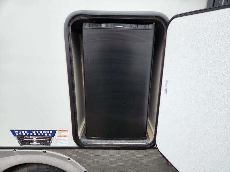 With any Salem Hemisphere Hyper-Lyte travel trailer by Forest River, you will appreciate a wide stance axle and Maxxis radial tires for smooth towing, plus laminated "Aluma Frame" sidewalls and floor for added durability. There are also square windows with built-in shades with reflecting thermal-foil backing to help keep your trailer cool during the summer. The 2" accessory hitch receiver will allow you to bring along more camp gear and the tankless water heater is a feature you won't want to camp without! Inside, you'll find Temple Cherry cabinetry, wood door casings in place of plastic, a residential single bowl undermount sink, and many more comforts. Outside, your furry friend will be happy with the shaded pet tether and security hook, and there is even an outside shower with hot and cold water to fill the dogs water bowl and wash off hiking boots!