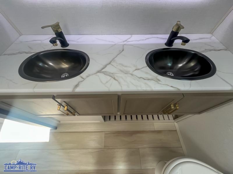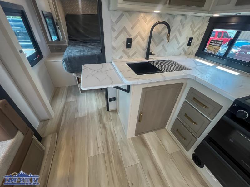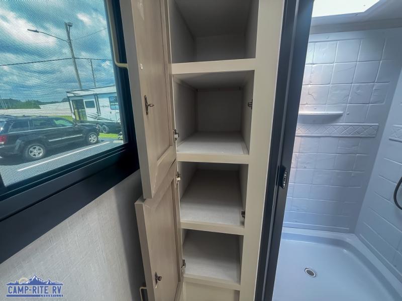 With any Salem Hemisphere Hyper-Lyte travel trailer by Forest River, you will appreciate a wide stance axle and Maxxis radial tires for smooth towing, plus laminated "Aluma Frame" sidewalls and floor for added durability. There are also square windows with built-in shades with reflecting thermal-foil backing to help keep your trailer cool during the summer. The 2" accessory hitch receiver will allow you to bring along more camp gear and the tankless water heater is a feature you won't want to camp without! Inside, you'll find Temple Cherry cabinetry, wood door casings in place of plastic, a residential single bowl undermount sink, and many more comforts. Outside, your furry friend will be happy with the shaded pet tether and security hook, and there is even an outside shower with hot and cold water to fill the dogs water bowl and wash off hiking boots!