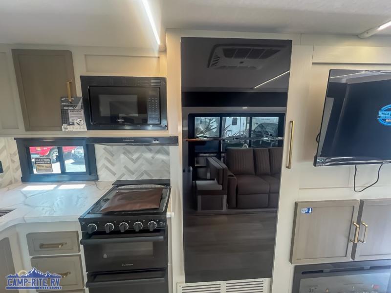 Once you step inside this spacious Salem Hemisphere Hyper-Lyte travel trailer, you'll want to take it out every other weekend for fun with your friends or family! The large slide out opens up the living and kitchen area and allows everyone to move around freely. The chef of the family can prepare dinner on the three-burner range, and they'll love having hidden storage behind the entertainment center for canned goods, snacks, and more. After a day at the lake, get cleaned up in the full rear bath before heading to the living area to relax on the theater seating while you watch a show on the 40" LED TV with a fireplace below. This trailer includes a front private bedroom with a queen bed with Versa-Tilt and space to walk around the bed. You can easily store all your hiking gear in the Texas sized pass-through storage, and cold drinks can go in the outdoor refrigerator!
