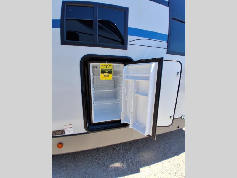 Once you step inside this spacious Salem Hemisphere Hyper-Lyte travel trailer, you'll want to take it out every other weekend for fun with your friends or family! The large slide out opens up the living and kitchen area and allows everyone to move around freely. The chef of the family can prepare dinner on the three-burner range, and they'll love having hidden storage behind the entertainment center for canned goods, snacks, and more. After a day at the lake, get cleaned up in the full rear bath before heading to the living area to relax on the theater seating while you watch a show on the 40" LED TV with a fireplace below. This trailer includes a front private bedroom with a queen bed with Versa-Tilt and space to walk around the bed. You can easily store all your hiking gear in the Texas sized pass-through storage, and cold drinks can go in the outdoor refrigerator!