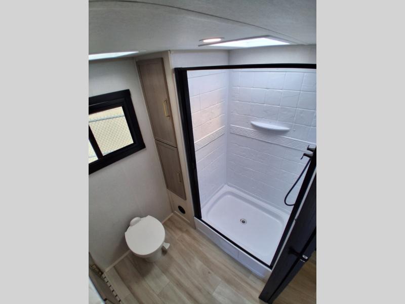 With any Salem Hemisphere Hyper-Lyte travel trailer by Forest River, you will appreciate a wide stance axle and Maxxis radial tires for smooth towing, plus laminated "Aluma Frame" sidewalls and floor for added durability. There are also square windows with built-in shades with reflecting thermal-foil backing to help keep your trailer cool during the summer. The 2" accessory hitch receiver will allow you to bring along more camp gear and the tankless water heater is a feature you won't want to camp without! Inside, you'll find Temple Cherry cabinetry, wood door casings in place of plastic, a residential single bowl undermount sink, and many more comforts. Outside, your furry friend will be happy with the shaded pet tether and security hook, and there is even an outside shower with hot and cold water to fill the dogs water bowl and wash off hiking boots!