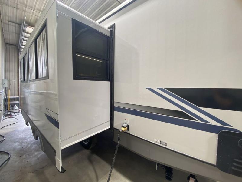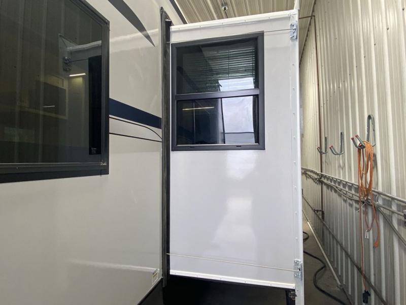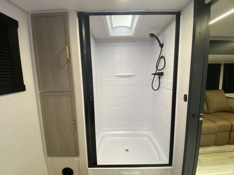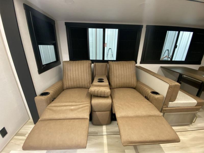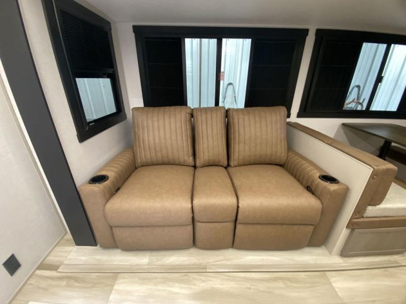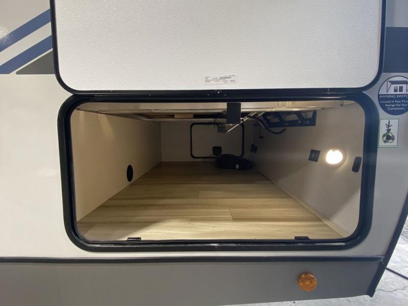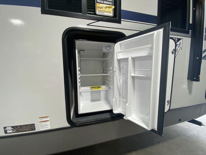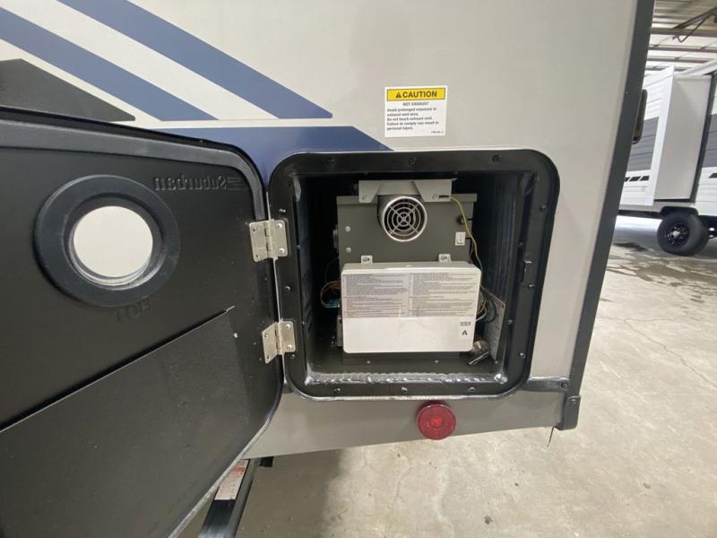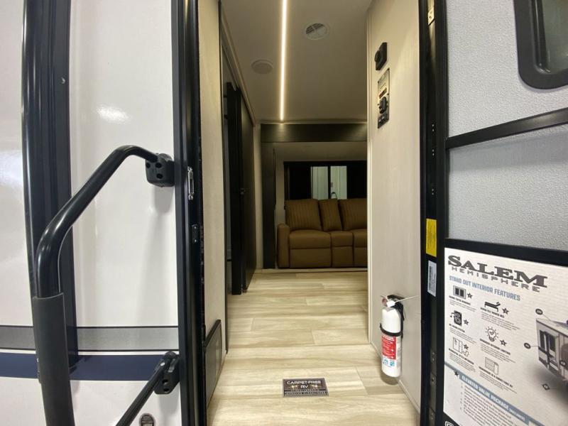 Once you step inside this spacious Salem Hemisphere Hyper-Lyte travel trailer, you'll want to take it out every other weekend for fun with your friends or family! The large slide out opens up the living and kitchen area and allows everyone to move around freely. The chef of the family can prepare dinner on the three-burner range, and they'll love having hidden storage behind the entertainment center for canned goods, snacks, and more. After a day at the lake, get cleaned up in the full rear bath before heading to the living area to relax on the theater seating while you watch a show on the 40" LED TV with a fireplace below. This trailer includes a front private bedroom with a queen bed with Versa-Tilt and space to walk around the bed. You can easily store all your hiking gear in the Texas sized pass-through storage, and cold drinks can go in the outdoor refrigerator!