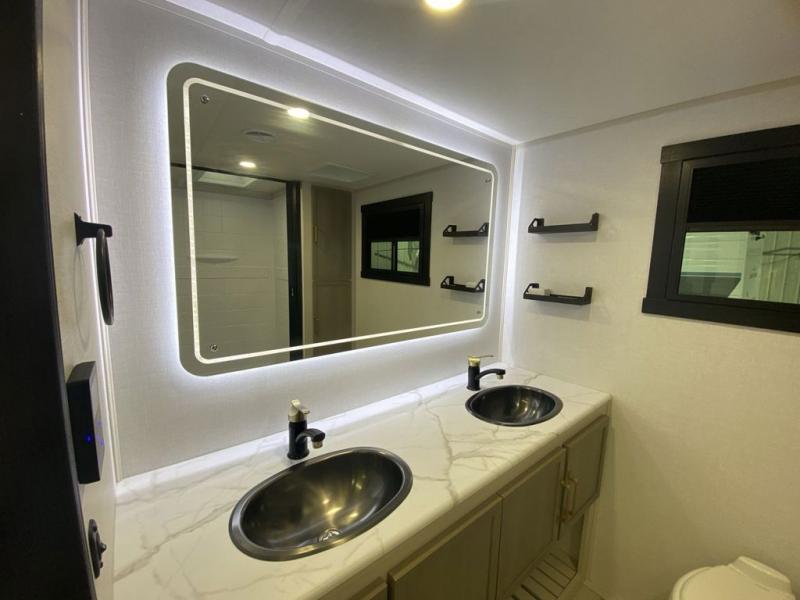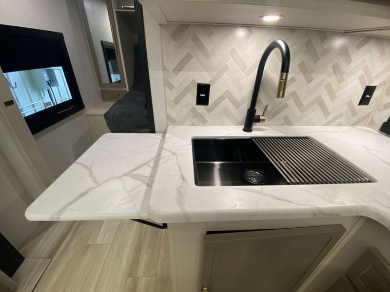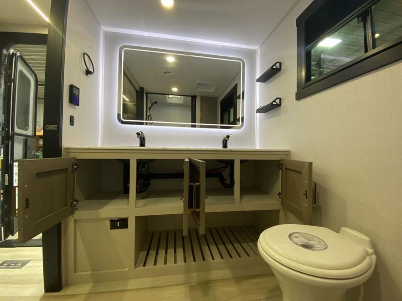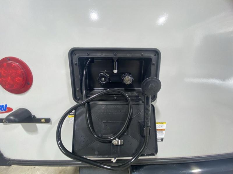 With any Salem Hemisphere Hyper-Lyte travel trailer by Forest River, you will appreciate a wide stance axle and Maxxis radial tires for smooth towing, plus laminated "Aluma Frame" sidewalls and floor for added durability. There are also square windows with built-in shades with reflecting thermal-foil backing to help keep your trailer cool during the summer. The 2" accessory hitch receiver will allow you to bring along more camp gear and the tankless water heater is a feature you won't want to camp without! Inside, you'll find Temple Cherry cabinetry, wood door casings in place of plastic, a residential single bowl undermount sink, and many more comforts. Outside, your furry friend will be happy with the shaded pet tether and security hook, and there is even an outside shower with hot and cold water to fill the dogs water bowl and wash off hiking boots!