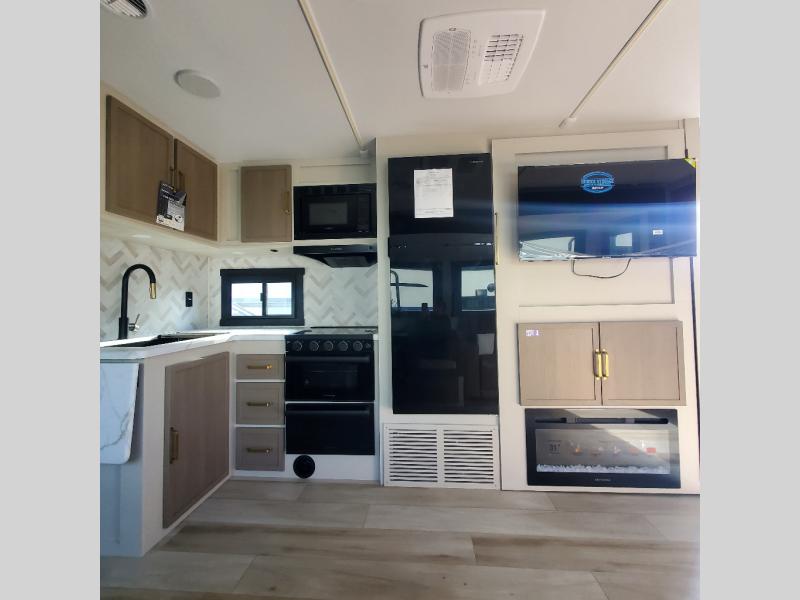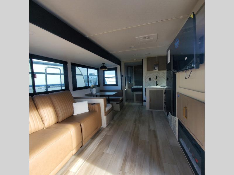 Once you step inside this spacious Salem Hemisphere Hyper-Lyte travel trailer, you'll want to take it out every other weekend for fun with your friends or family! The large slide out opens up the living and kitchen area and allows everyone to move around freely. The chef of the family can prepare dinner on the three-burner range, and they'll love having hidden storage behind the entertainment center for canned goods, snacks, and more. After a day at the lake, get cleaned up in the full rear bath before heading to the living area to relax on the theater seating while you watch a show on the 40" TV with a fireplace below. This trailer includes a front private bedroom with a queen bed with Versa-Tilt and space to walk around the bed. You can easily store all your hiking gear in the Texas sized pass-through storage.