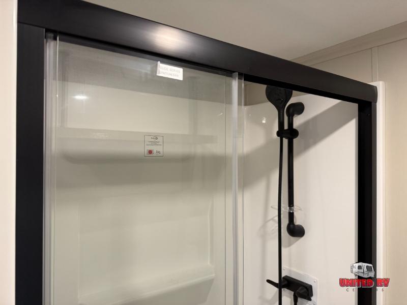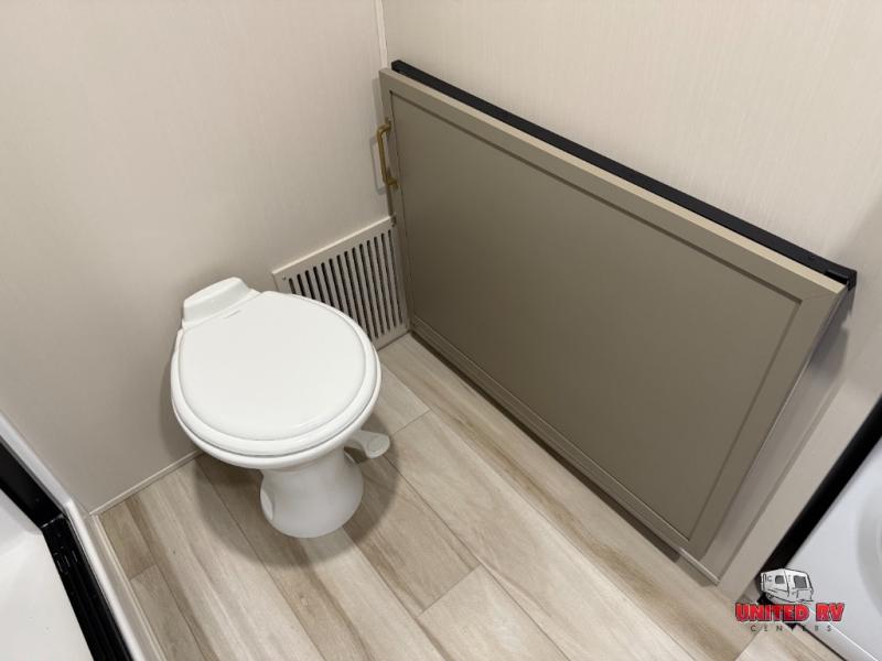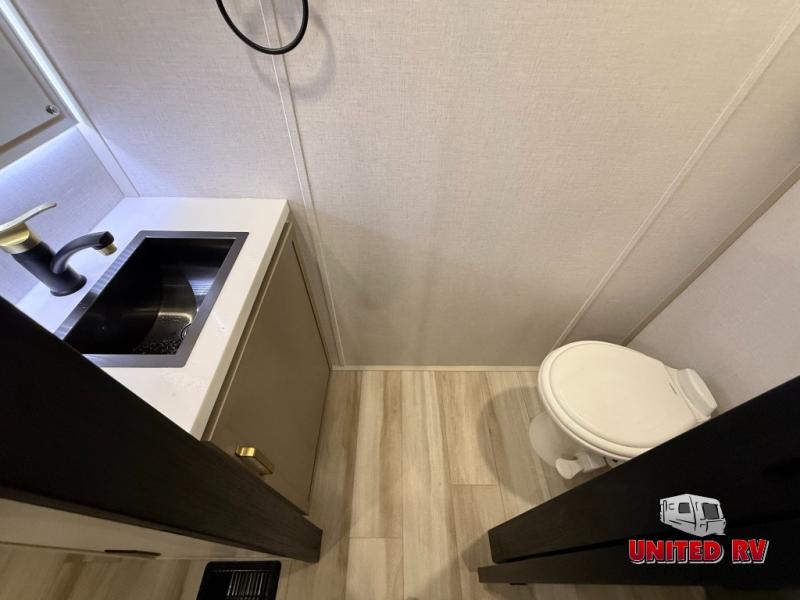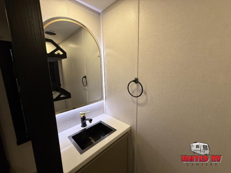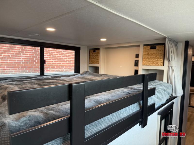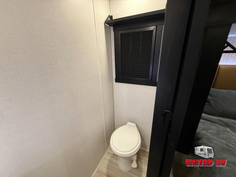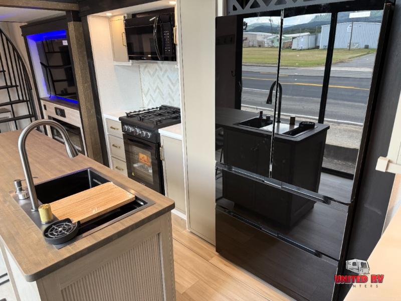 The Salem Hemisphere ROOST fifth wheels resemble a destination trailer that will be giving you residential vibes! The premium Alley Grey high-gloss gel coat fiberglass sidewalls are ultra sleek, and the flat pitched roof sheds water to the off-door side for added comfort. A Race Track A/C duct system provides maximum cooling, and the AccessiBelly underbelly with 12V tank heaters on all holding tanks will help extend your camping season. There are high-end solid surface and maple-stained wood countertops inside, along with residential-inspired wood door casings, and 6' 8" clearance in all rooms, excluding lofts. Additional features include a Gun Metal grey kitchen sink, backlit mirrors in the bathrooms, motion sensor lights by the spiral stair cases, and back up camera prep if you want the option to make parking easier than ever.