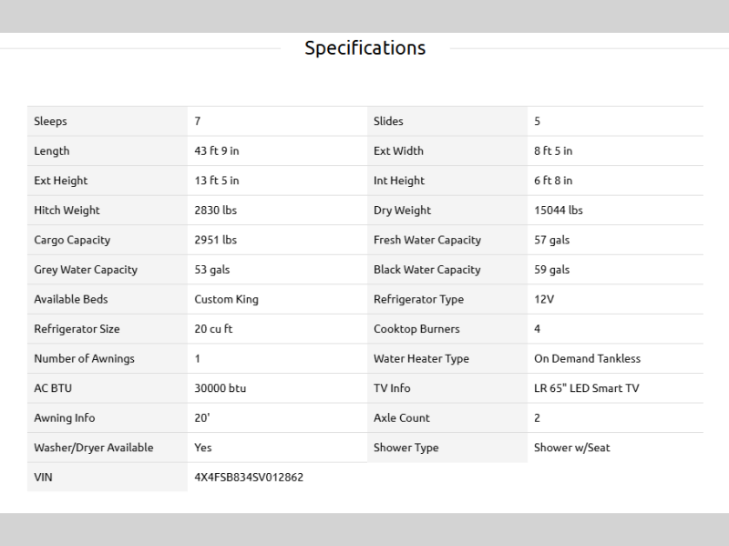 | Awning Info | 20' |