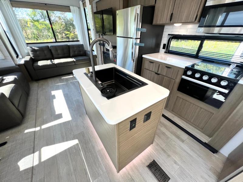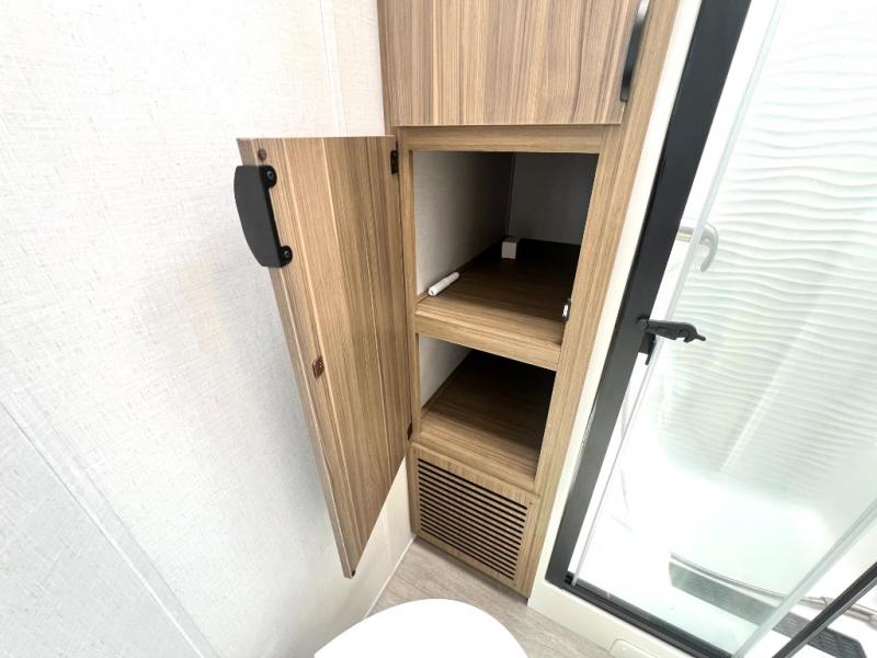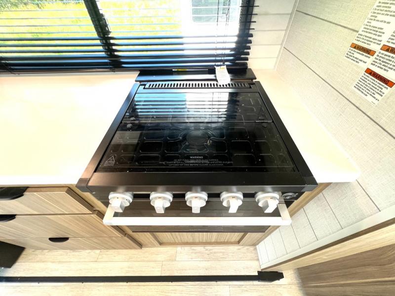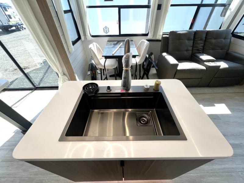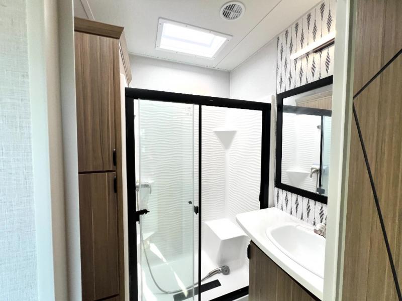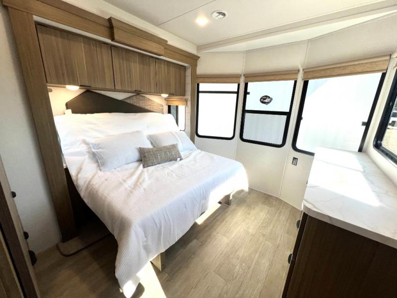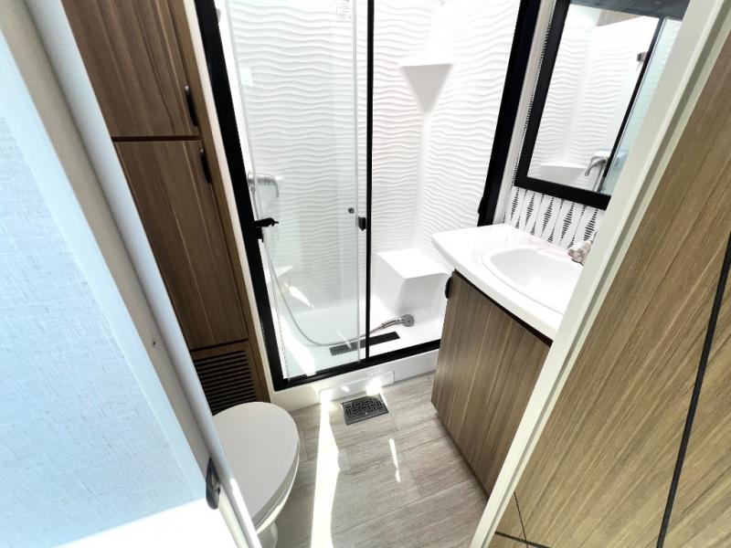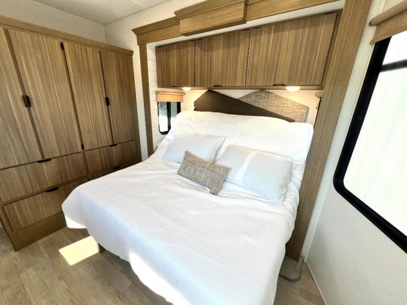 Premium features: JBL stereo, dimmable LED “blade lighting,” heated & enclosed underbelly, 60K on-demand tankless water heater, Versa-tilt bed, and more