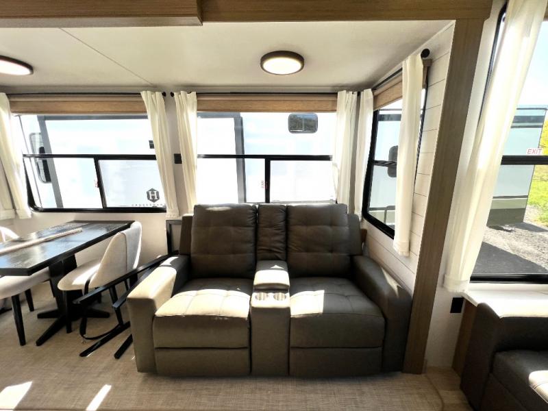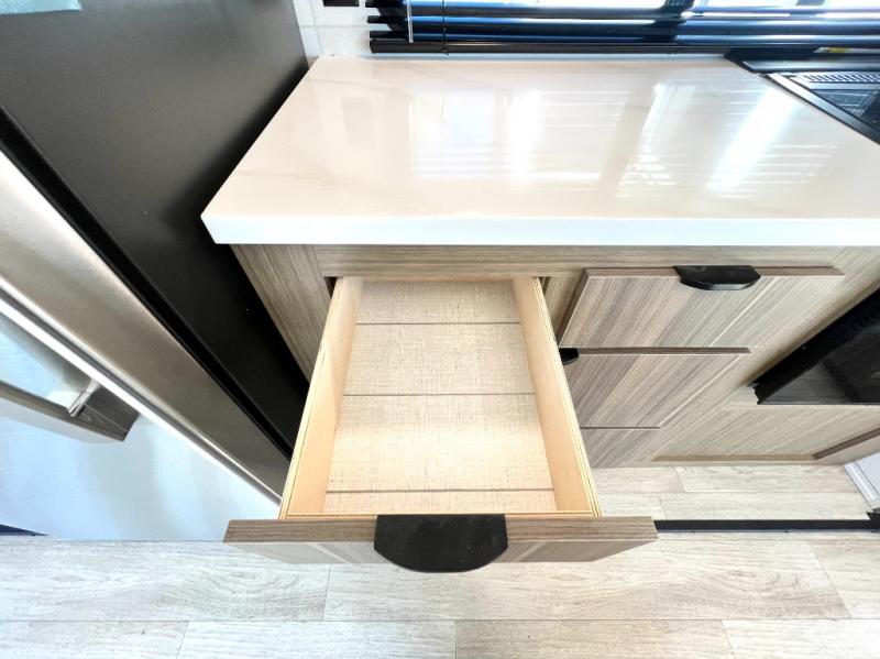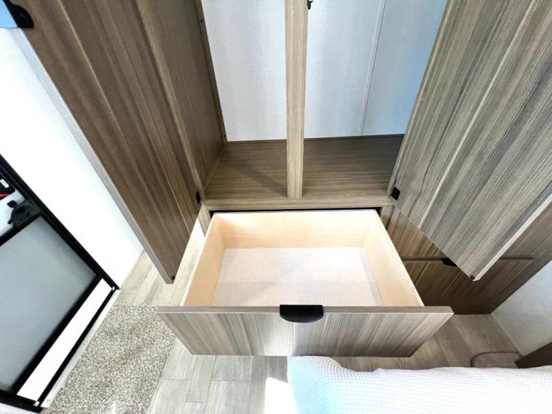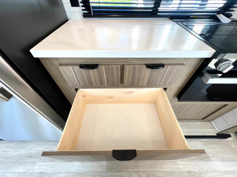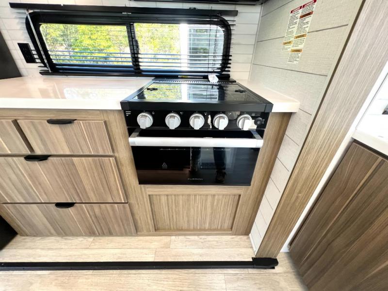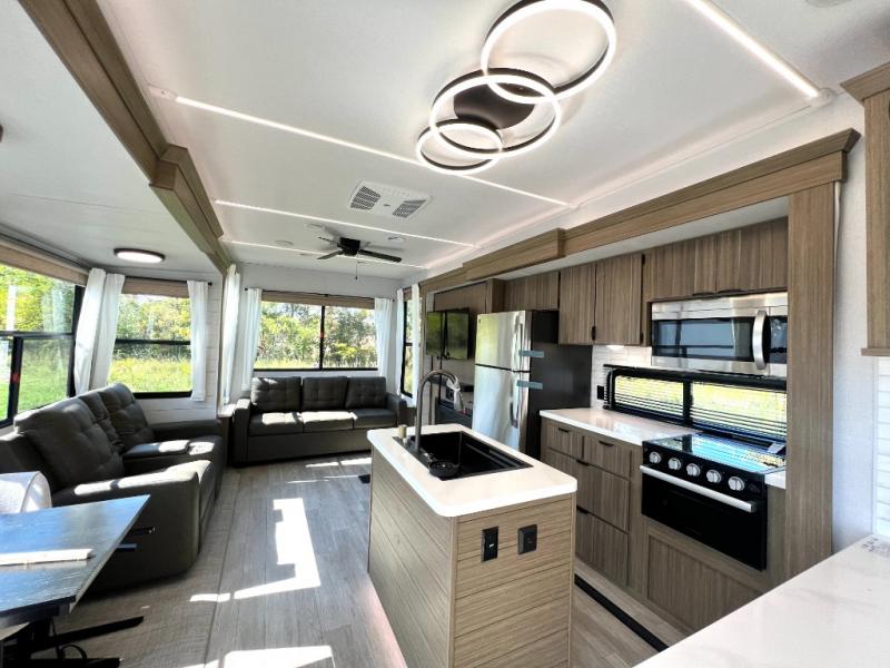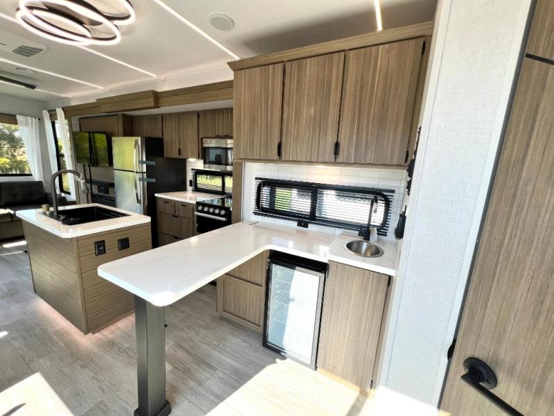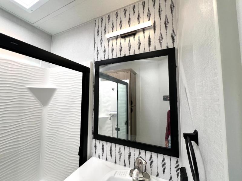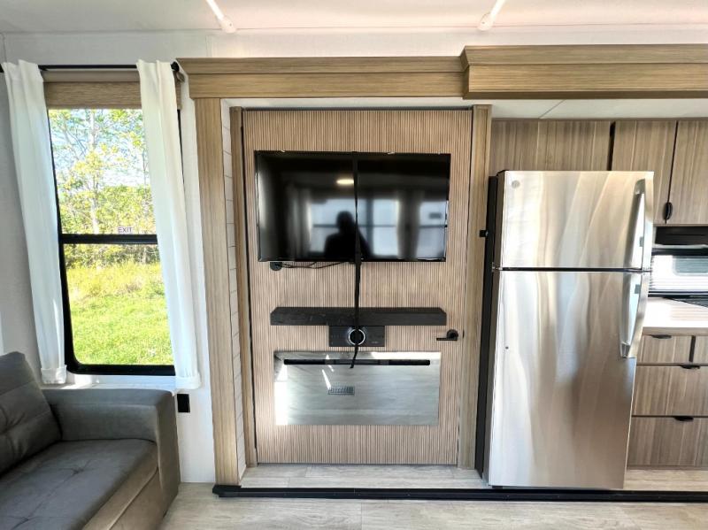 Premium features: JBL stereo, dimmable LED “blade lighting,” heated & enclosed underbelly, 60K on-demand tankless water heater, Versa-tilt bed, and more