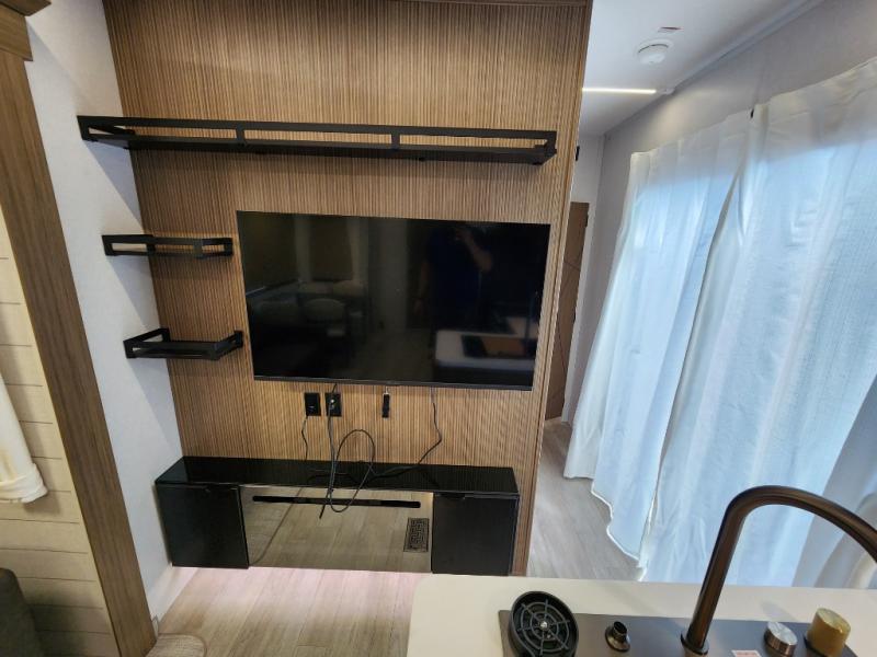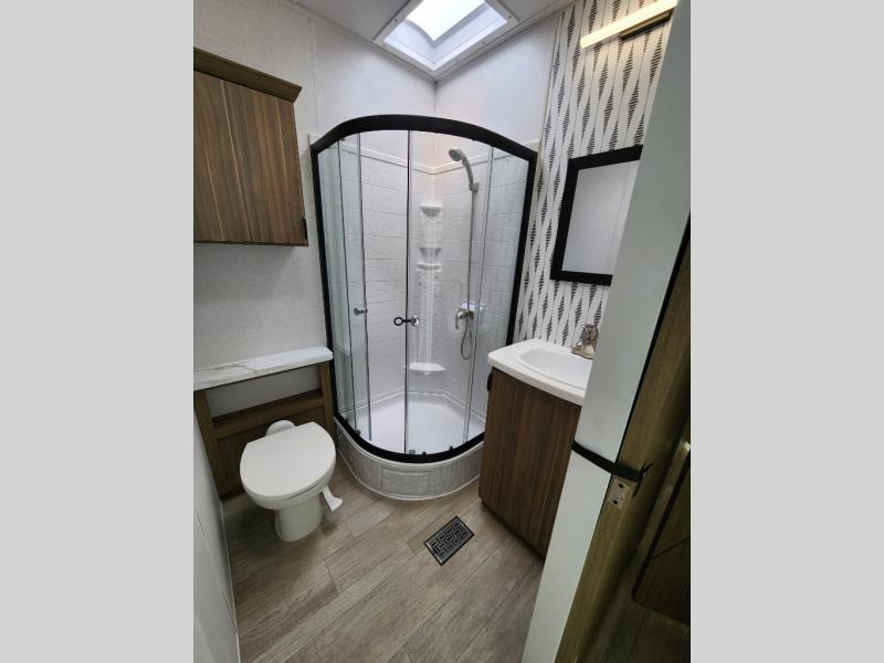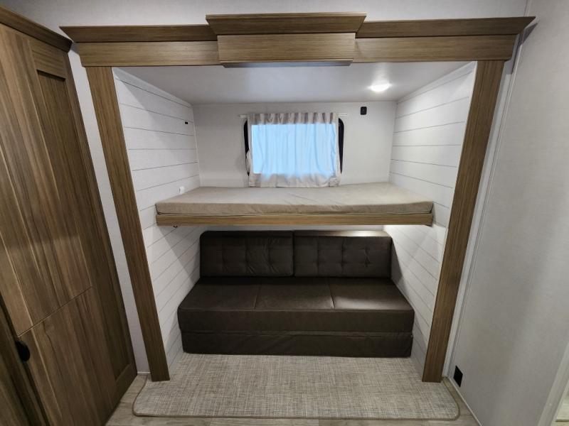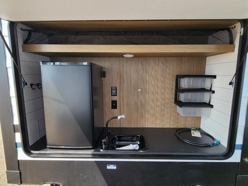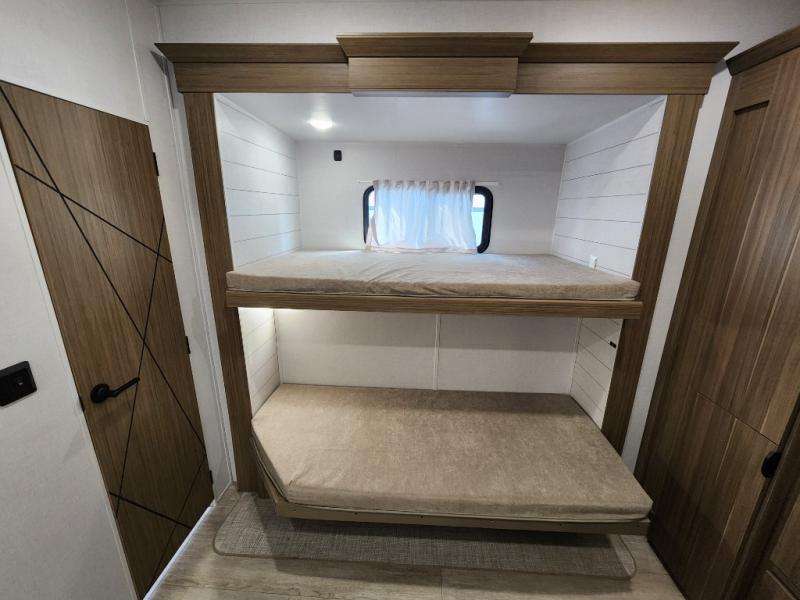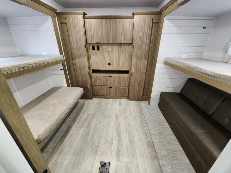 Spend your weekends sleeping on your own queen-size bed in the private bedroom while your guests or children spend their time in their very own bunkhouse suite that has opposing bunk bed slides and its own half bathroom with a private exterior entry door. The kitchen provides the necessary amenities such as a burner stove, a 1.6 cu. ft. oversized residential microwave, and a double-basin undermount sink. The residential refrigerator will store all your leftovers as well. You can dine and play games. On top of all of that, you will also be able to unwind in front of a cozy fireplace each night before you head to bed and drift off dreaming of the new day of adventure coming!