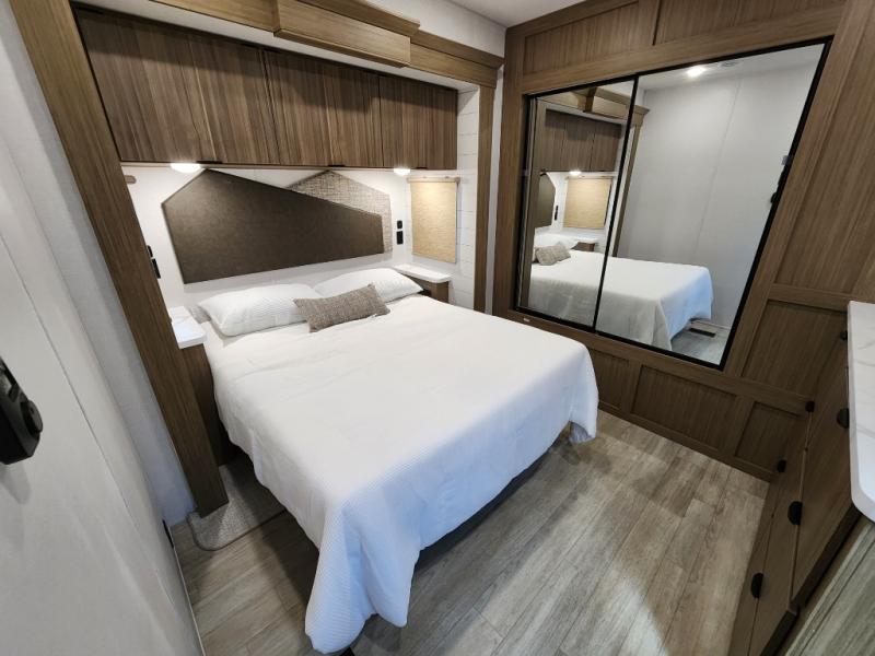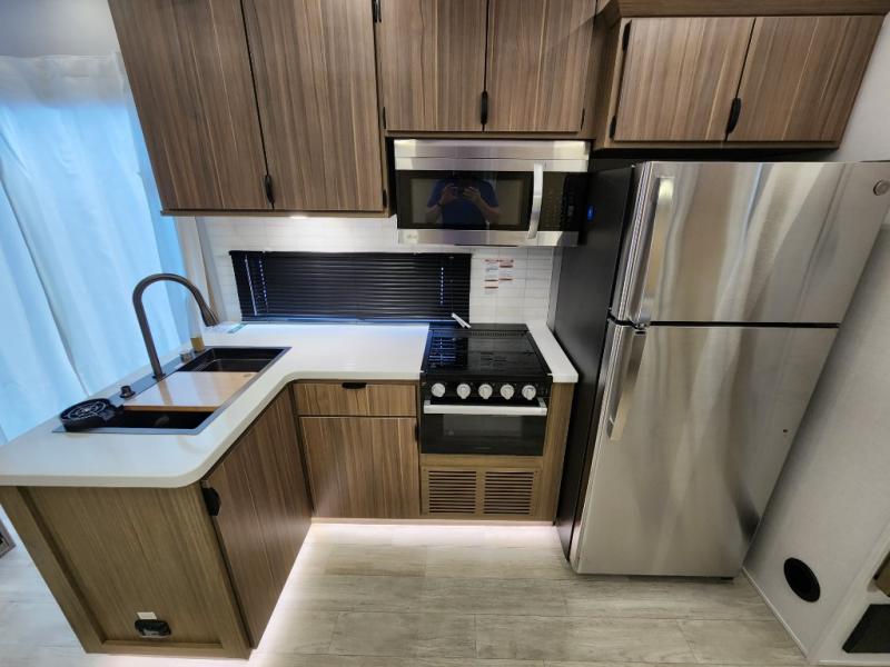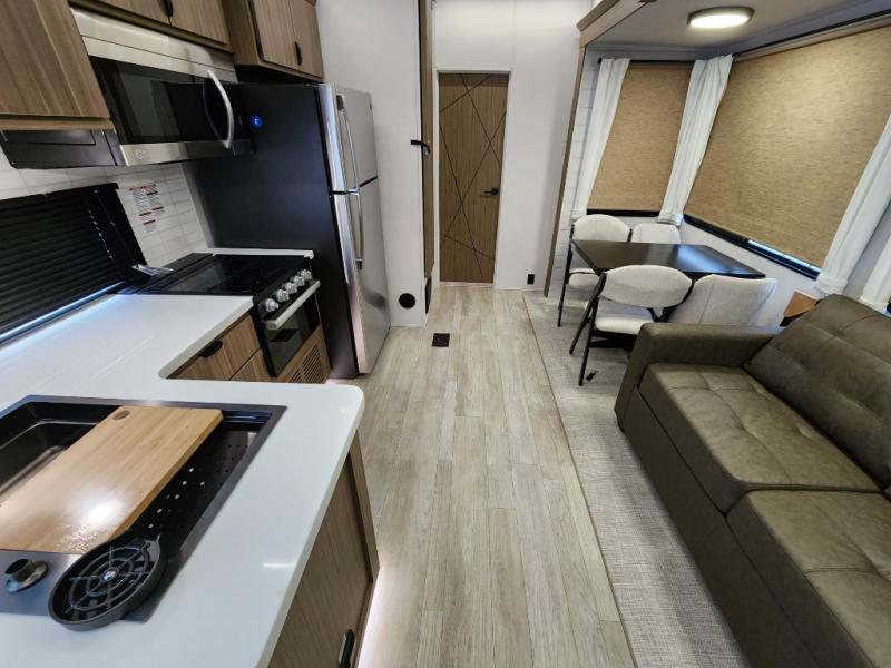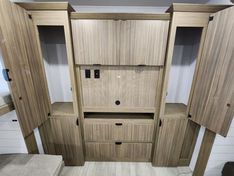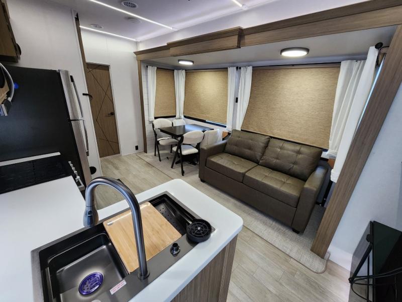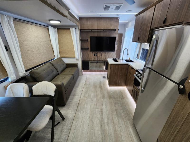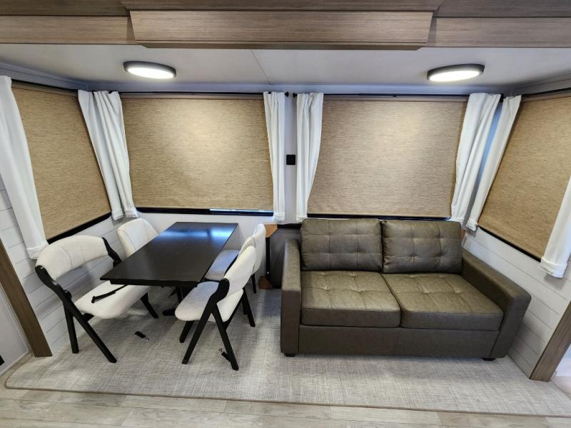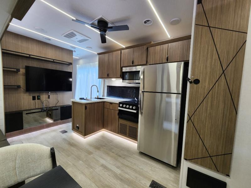 The Forest River Salem Villa Series destination trailer offers you an excellent space to relax in and rejuvenate your adventurous spirit! The 7' interior height is going to provide you with an open and spacious living area, and the heated and enclosed accessi-belly will protect your trailer from the elements. The Salem Villa Series comes loaded with upgraded designer furniture, a modern headboard redesign, stainless steel kitchen appliances, adjustable texture roller shades , and central vacuum with sweep attachment for a spotless home. There is also a few new features, including JBL speakers in the interior/exterior, a 4K blade lighting, a 60K tankless water heater, and more comforts!