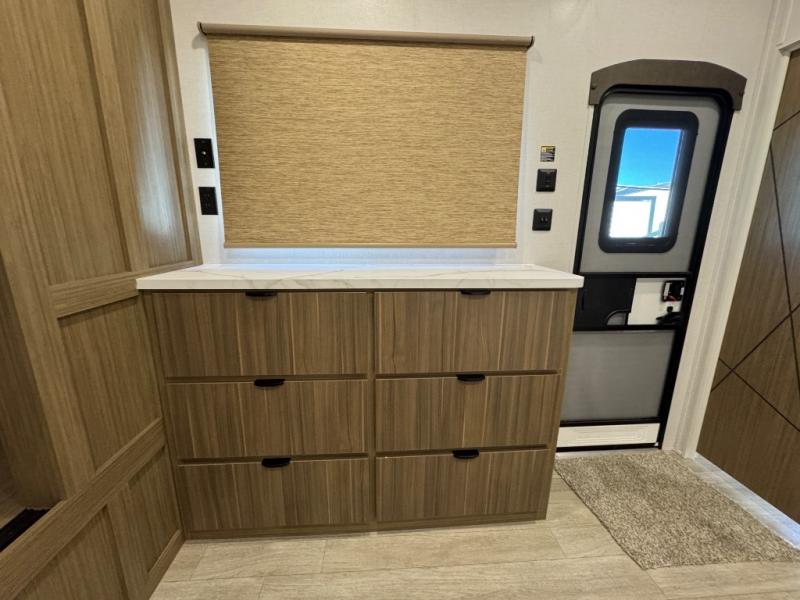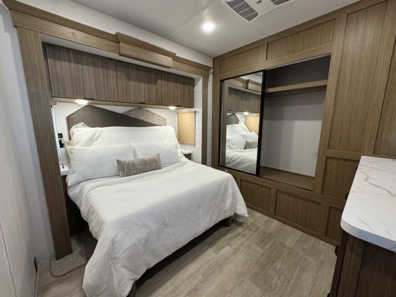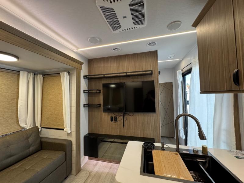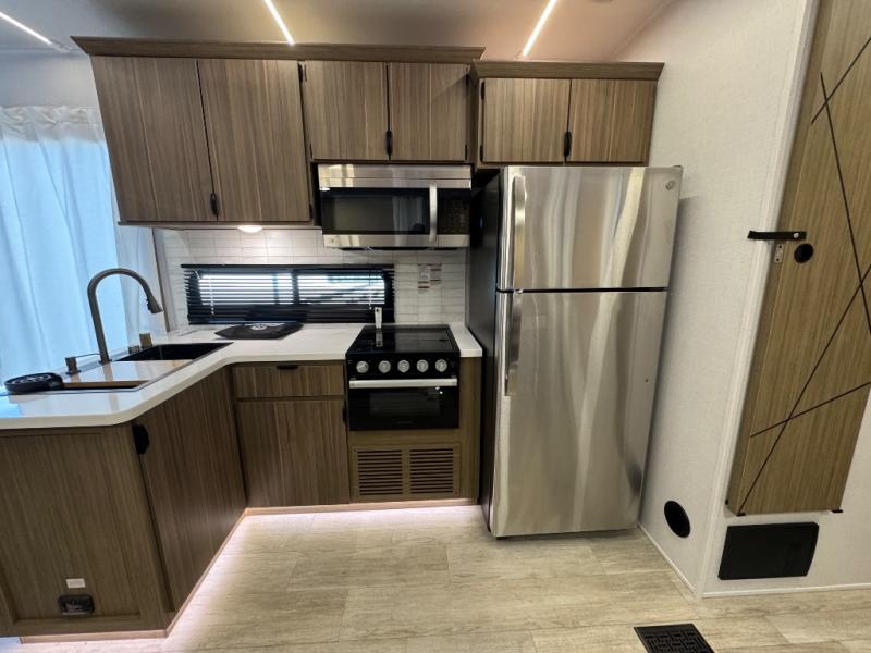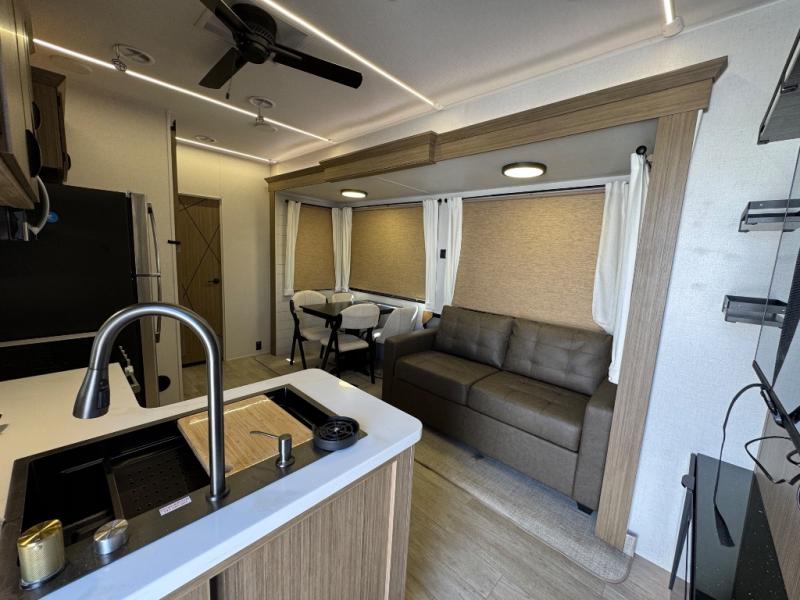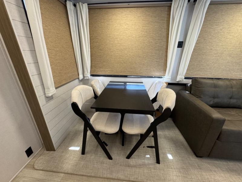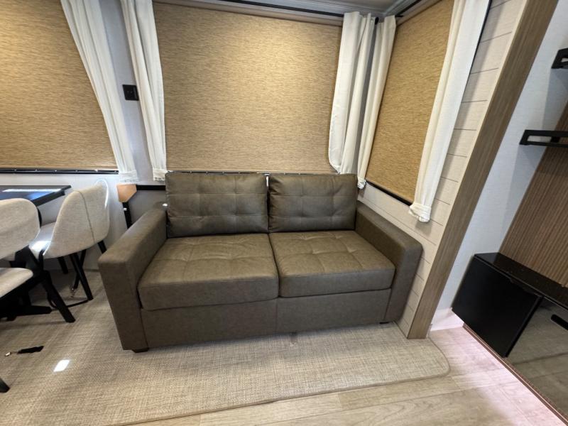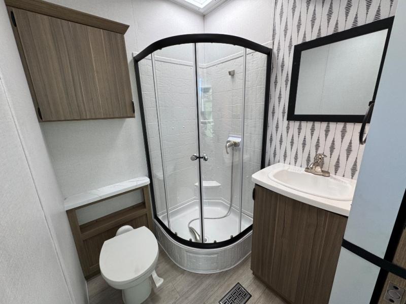 The Forest River Salem Villa Series destination trailer offers you an excellent space to relax in and rejuvenate your adventurous spirit! The 7' slide-out height is going to provide you with an open and spacious living area, and the heated and enclosed accessi-belly will protect your trailer from the elements. The Salem Villa Series comes loaded with upgraded designer furniture, a modern headboard redesign, stainless steel kitchen appliances, adjustable texture roller shades and enhanced floating shelves. There is also a few new features, including JBL speakers in the interior/exterior, a 4K blade lighting, a 60K tankless water heater, and more comforts!
