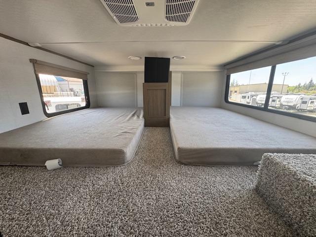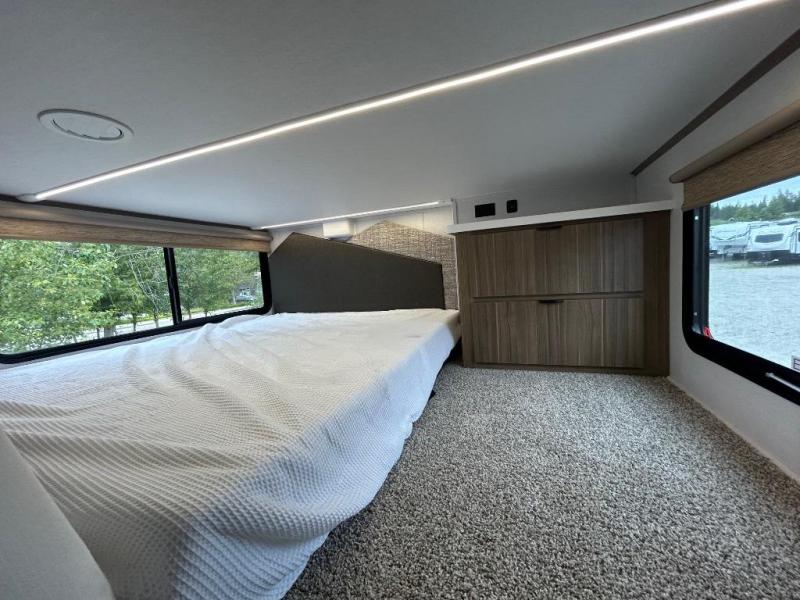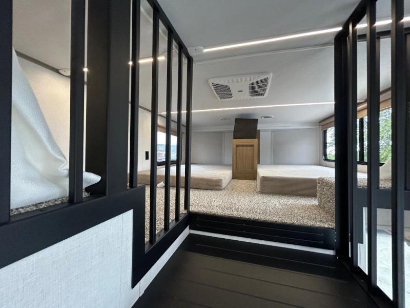Front & Rear Lofts – Dual loft spaces offer generous sleeping arrangements for kids, guests, or storage, with two 42" x 74" bunk mats in the front and a Versa Queen mattress in the rear.